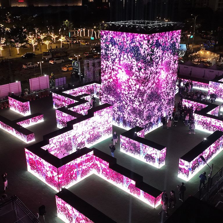 台灣燈會睽違 23 年再度回歸台北,全聯實業為響應台灣燈會在台北,且適逢企業 25 週年,邀請文化科技策展人馮建彰(二馬)帶領的台灣團隊 FREES 與曾參與「白晝之夜」的國際知名 AI 新媒體藝術團隊 OUCHHH 合作,運用 LED 共同打造迷宮形式的光影藝術作品《光鑰未來 全聯 25》。