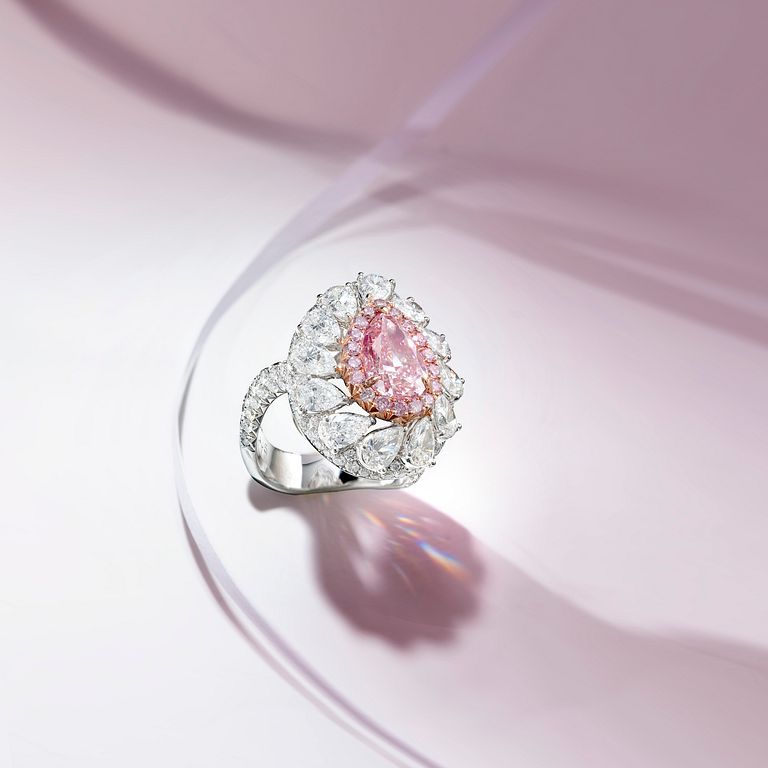 3.01 克拉梨形濃彩粉紅色鑽石配鑽石戒指,附 GIA 證書(圖/羅芙奧)