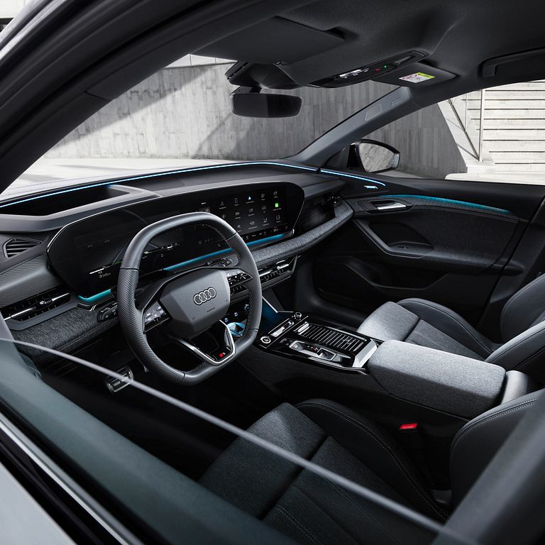 全新電子平台使 Audi 車主體驗更甚以往的數位化進程,Audi Q6 e-tron 作為首款使用全新E3架構的車型,其搭載數位內裝,智能互聯網連結多樣數位功能,帶來全新的創新車艙體驗。同時 Audi 於 Audi Q6 e-tron 中引進與軟體公司 CARIAD 共同開發的資訊娛樂平台,以 Android Automotive 為基礎,並持續進行軟體更新確保車輛系統隨時保持最新狀態,用戶不管在線上或線下皆可使用 Audi 智慧語音助理控制多種車輛功能,可於儀表板和抬頭顯示器上呈現。除了以「Hey Audi」啟動語音助理,也可透過其他方式和 myAudi app 啟動。基於多功能而言,新的顯示和操作方式可讓駕駛使用語音對話搜索最近的充電站。智慧語音助理會不斷學習用戶行為並提供最好的服務,服務內容可以分為三類:主動建議(根據上下文內容主動建議啟動相關功能)、智能例行程序(例如根據外部溫度使用座椅空調)、智能列表(如通話列表)。透過與 CARIAD 及其合作夥伴 Harman Ignite 聯合開發的應用程式商店,乘客可透過 MMI 顯示螢幕直使用第三方應用程序,無需智慧型手機可直接安裝在 Audi 訊息娛樂系統上,用戶也可以透過語音命令與應用程序進行交流。