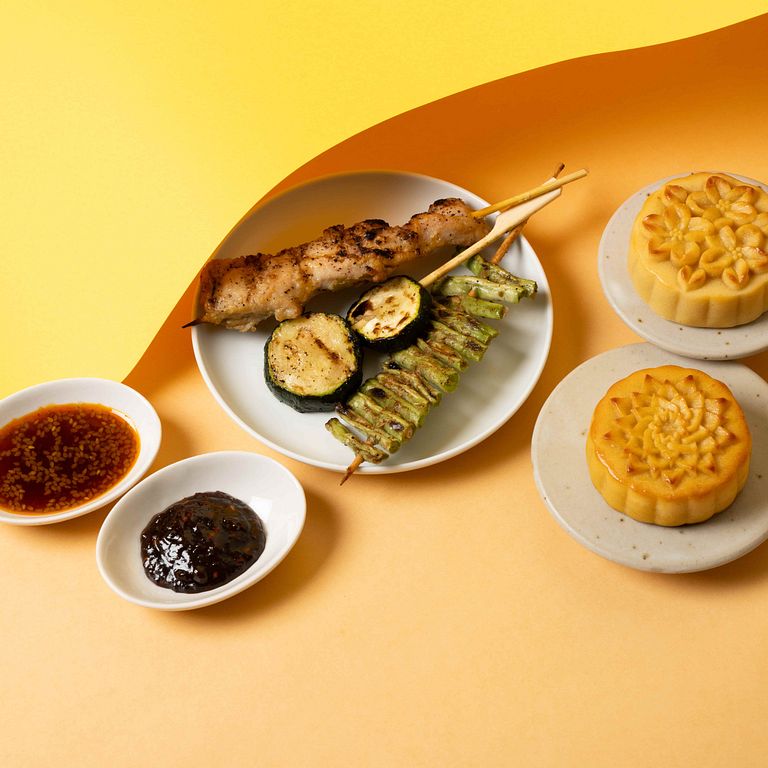 月光下,家家戶戶沉浸在烤肉香氣與笑聲中,今年的「微熱山丘茅乃舍中秋禮盒」上層擺放的是中秋限定的鳳梨奶黃月餅與紅玉蘋果月餅,下層則藏著茅乃舍傳承百年的燒肉醬與烤香蒜味噌醬。前者的醬油經二次熟成,與大蒜、芝麻和昆布融合,後者則以五穀味噌和細膩磨烤的大蒜混合而成。這些獨特的風味,讓每一口烤肉都充滿層次感。