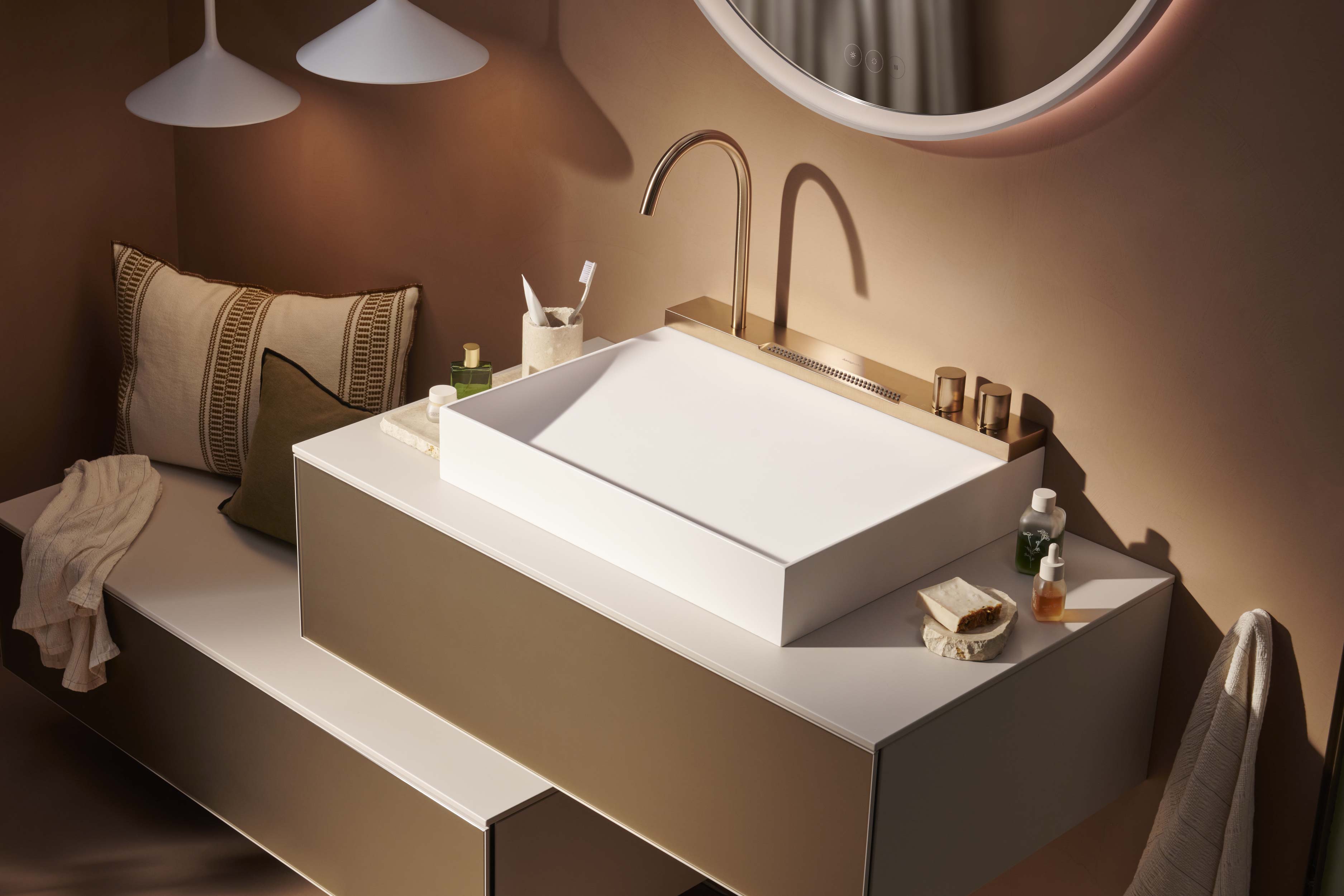 分享本圖同樣榮獲 iF 設計金獎的 Avalegra 出水面盆,體現 Phoenix Design 的突破思維。設計團隊從一個簡單但卻很深刻的問題出發:如何讓日常洗滌不再只是動作,而是一種情感體驗? Avalegra 採用一體成形的設計,將面盆與龍頭無縫融合,結構化繁為簡,呈現極簡優雅的輪廓,也大大簡化了安裝流程。另外在水流體驗上更別具巧思,除了傳統的出水模式, Avalegra 更創新加入由下而上的噴泉式拋物水流設計,讓使用者感受溫潤水流的細膩觸感,在日常洗滌中釋放疲憊,獲得療癒。直覺化的旋鈕操作可以精準調節水溫、切換出水口與水量,並具備恆溫與記憶功能,確保每次使用皆安全舒適。