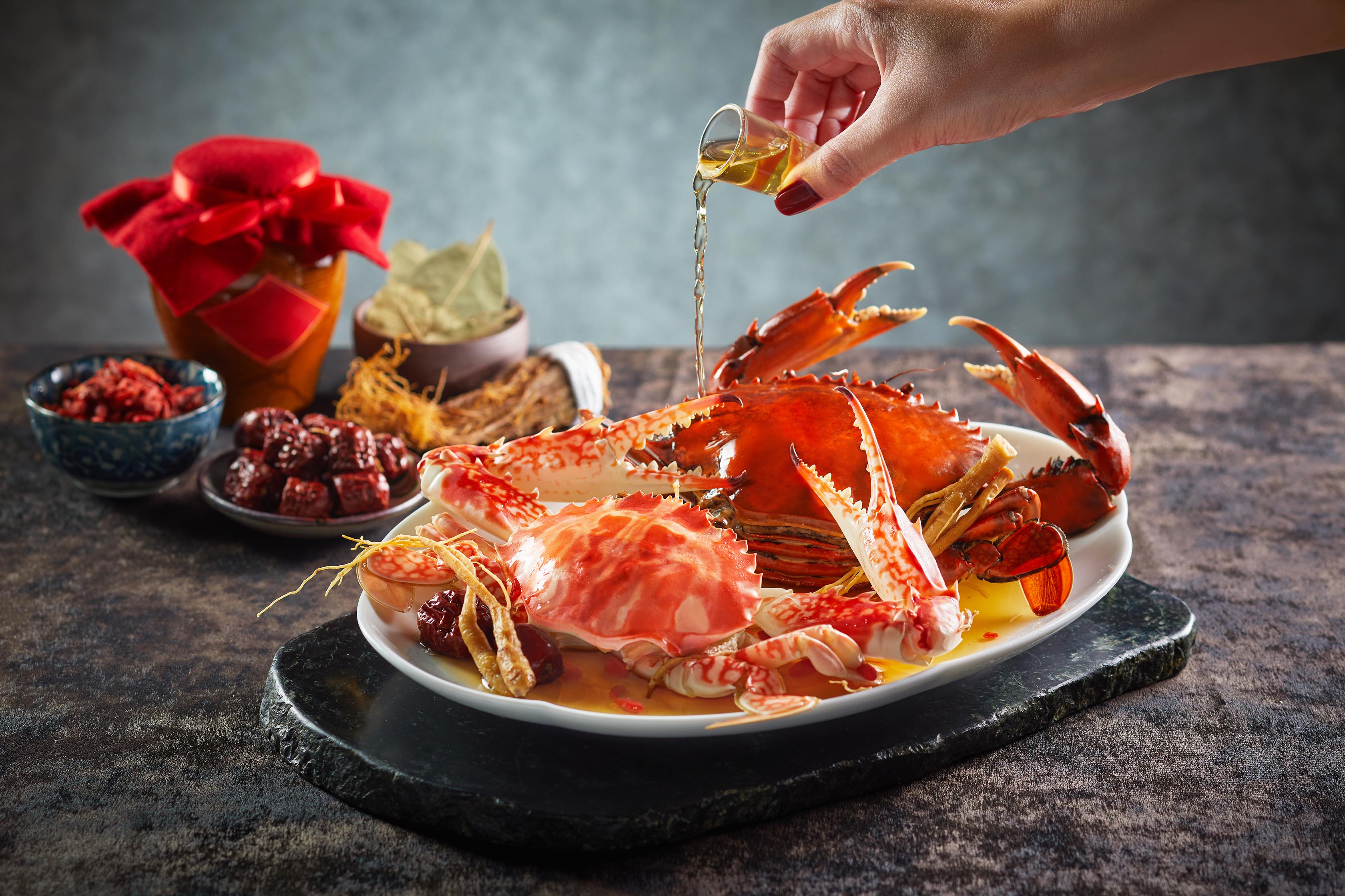 楠西梅汁醉紅蟳。(圖/台南遠東香格里拉飯店 提供)