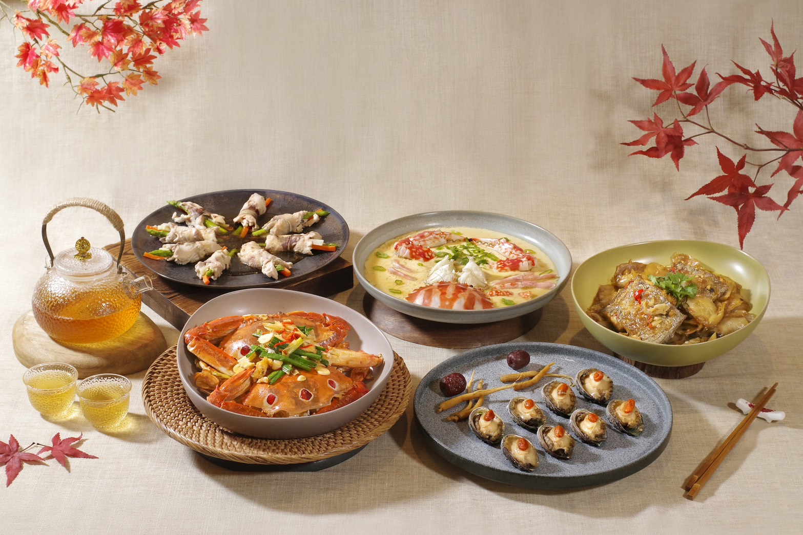 除了北部,台南遠東香格里拉飯店「醉月樓」推出的《金秋盛宴》季節饗宴,也值得前往品嚐,由主廚精心打造的限定料理,至 10 月 31 日止,推出多道精緻螃蟹佳餚,包含「楠西梅汁醉紅蟳」、「石鍋豬肚湯紅蟳」、「黑椒薯仔煲紅蟳」,以及波士頓龍蝦料理「麻婆豆腐燴波龍」、「花雕銀絲蒸波龍」、「麻油山藥燒波龍」等,邀請賓客們感受新鮮的海味大餐。
