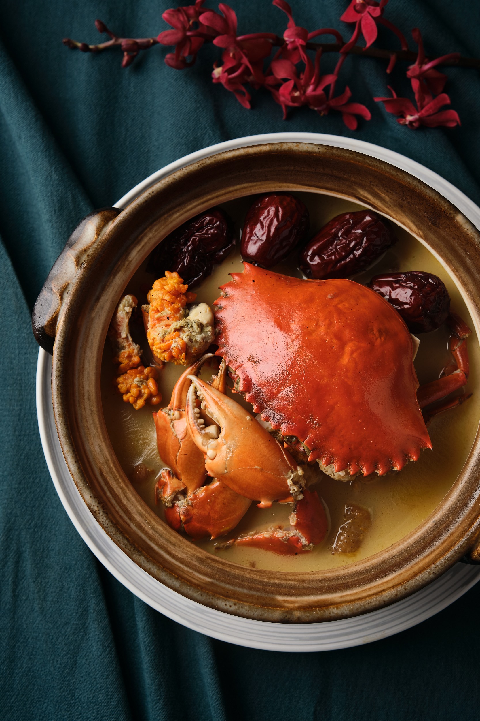 分享本圖另外,「沙母粉絲煲」選用濃郁蟹黃與蟹膏的沙母,放入鍋中油淋後,再加入高湯,經過長時間熬煮,開鍋後,濃郁的螃蟹香氣四溢,放入口中,鮮甜的蟹味在嘴中化開,與粉絲相互融合,使人深陷其中。此外,另外一道「花雕酒蛋白蒸黃金蟹」也備受喜愛,選用重達一公斤以上的加拿大黃金蟹,將其與蛋白、牛奶、陳年花雕酒、雞高湯,一同放入鍋中,放入口中,感受到濃郁鮮甜的蟹味與酒味,相互交織,讓人忍不住一口接著一口品嚐!
