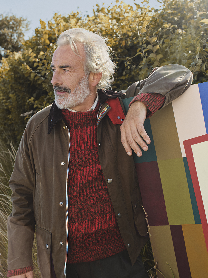 厚實條紋毛衣可輕鬆疊搭於油布外套下,為冬日戶外活動增添保暖感;油布漁夫帽與雨具則應對多變氣候。系列同時保有 Barbour 經典的防水性能,但細節上注入 Paul Smith 的幽默感與趣味設計,讓功能與玩味兼具。