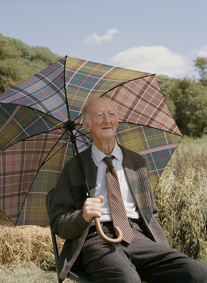 Barbour x Paul Smith 羊毛外套;長柄雨傘。