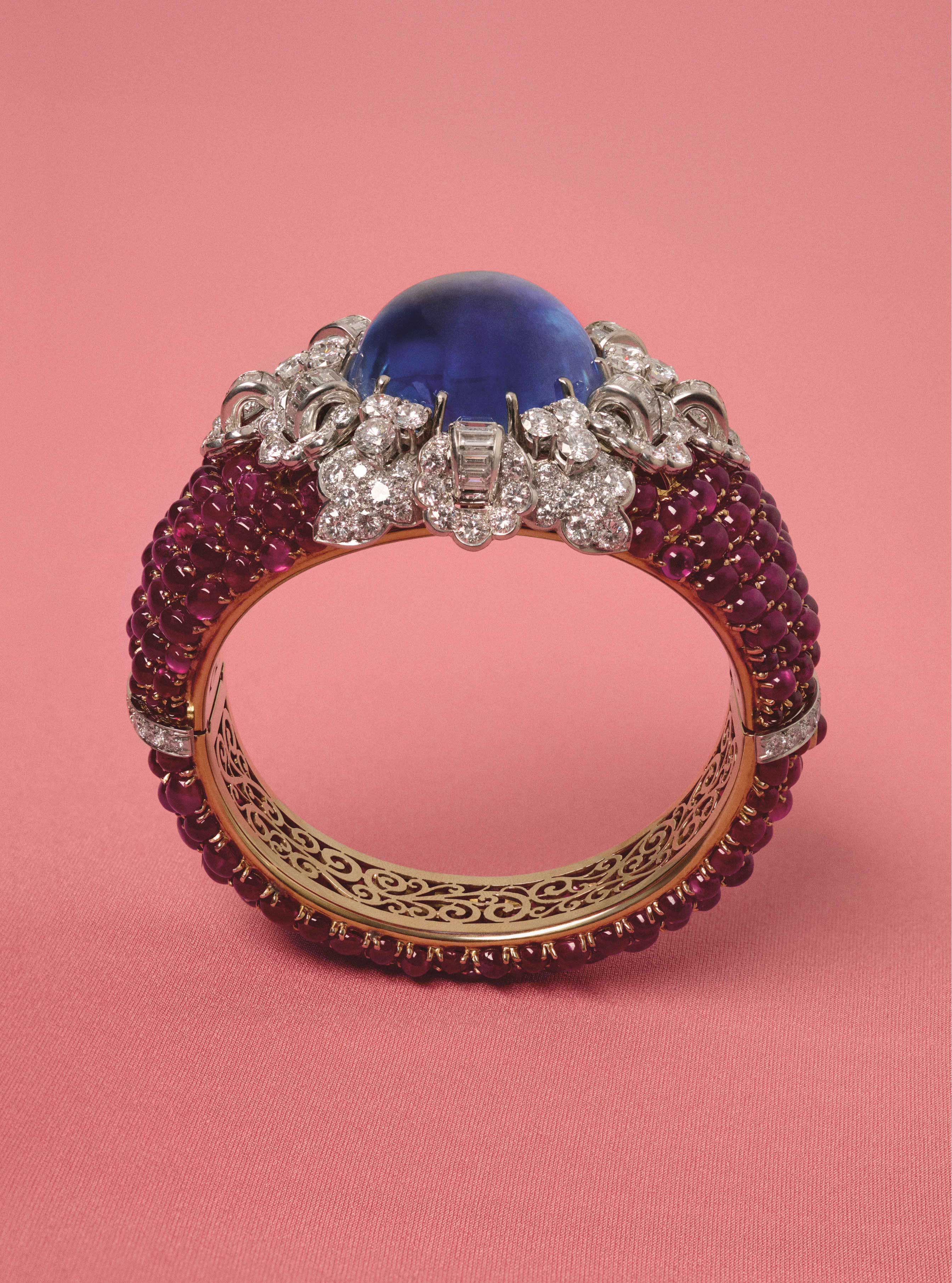 BVLGARI Heritage 典藏系列,藍寶石、紅寶石與鑽石手環。(圖/ BVLGARI 提供)