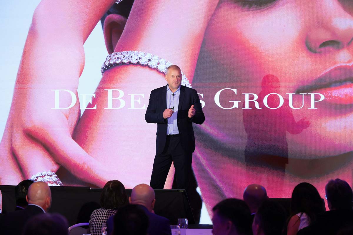 De Beers 集團鑽石貿易執行副總裁 Paul Rowley 、天然鑽石總經理 Lynn Serfaty 出席 De Beers 集團行業早餐會。(圖/De Beers 提供)