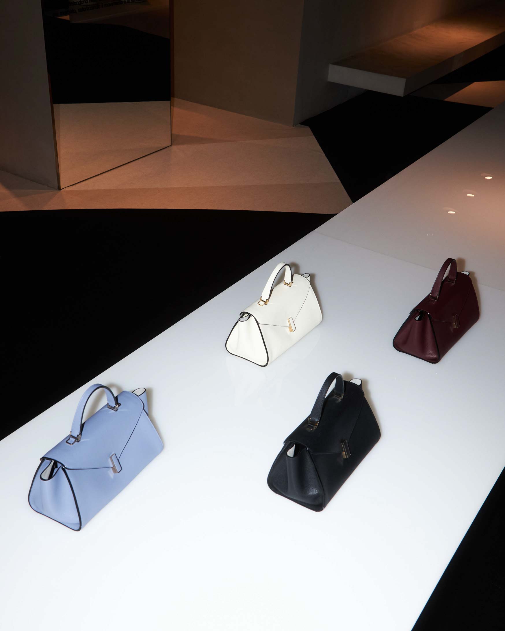 分享本圖延續 Iside 家族的幾何美學和標誌性旋轉機械鎖扣,這次迎來全新 Iside Editor 包款。以 Millepunte Soft 與 Senso 麂皮打造,兼具容量大與美觀,滿足都市女性日益進化需求。同時登場的 Iside Tìn 包款,以經典 Millepunte 皮革製成,呼應米蘭方言中對「小巧」的暱稱,展現 Valextra 在比例掌握上的精準拿捏。