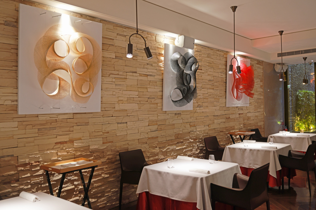 林靖格 ╳ 慕舍酒店「繆思之竹」竹編藝術個展——慕舍 GF 作品,左至右《巢》《迴》《焰》。(圖/慕舍酒店 提供)