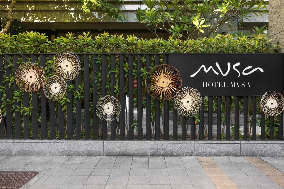林靖格 ╳ 慕舍酒店「繆思之竹」竹編藝術個展——慕舍外牆作品《萬象》。(圖/慕舍酒店 提供)
