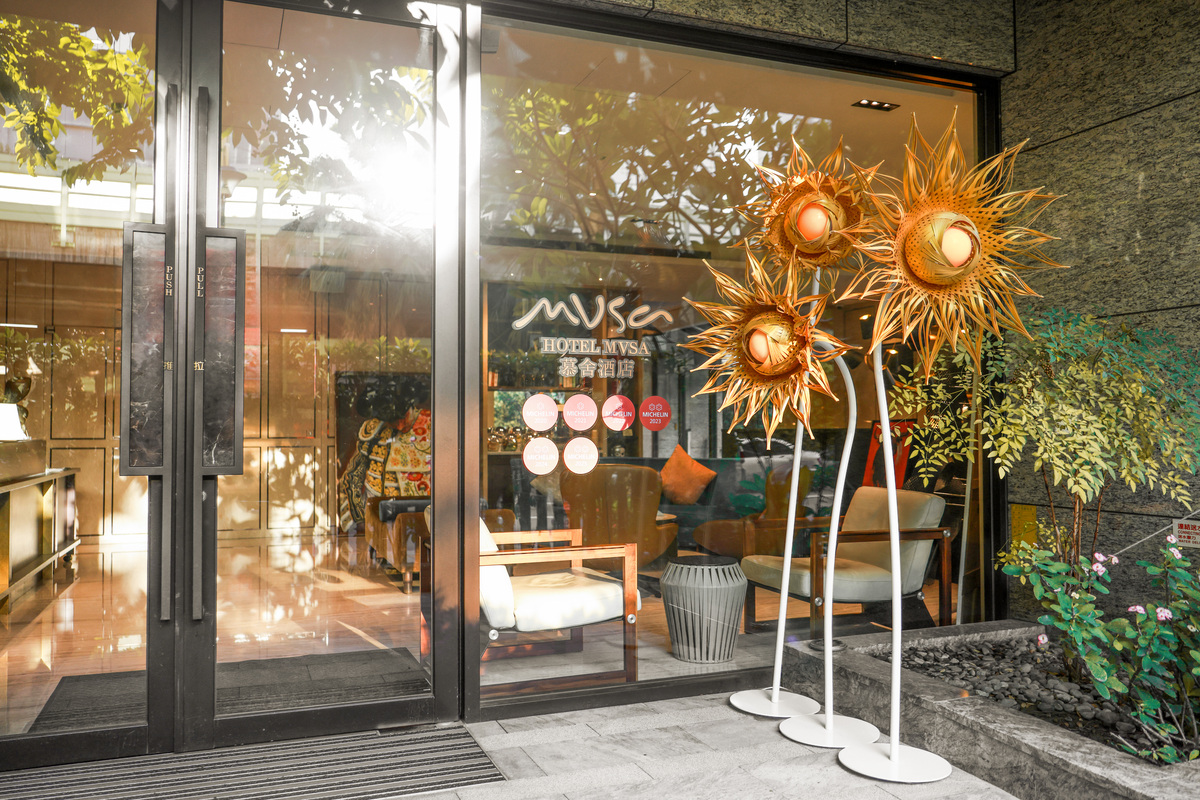 林靖格 ╳ 慕舍酒店「繆思之竹」竹編藝術個展——慕舍正門作品《永恆之花》。(圖/慕舍酒店 提供)