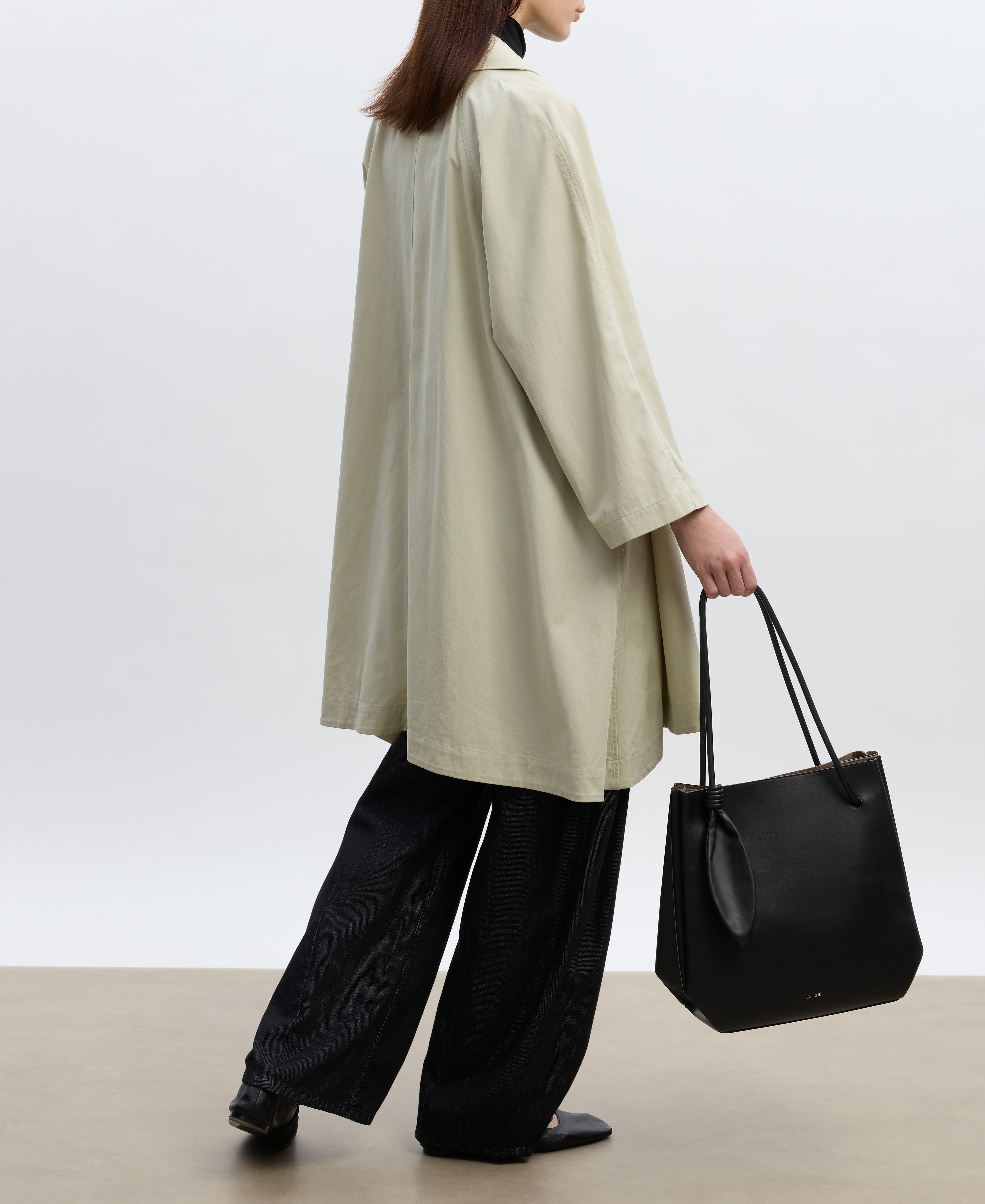 Ori Tote 系列從日本摺紙藝術 Origami 中汲取靈感,展現品牌對折疊與精緻結構的探索。包身線條簡約流暢,兩側褶皺呼應摺紙工藝,管狀手柄象徵植物莖稈的優雅弧度,葉形繩結代表成長與蛻變。包款採用義大利頂級納帕皮革(Nappa),輕盈柔軟且保持立體輪廓,兼具奢華觸感與日常實用性。黑色款沉穩百搭,柚木棕款則為秋冬造型增添溫潤層次。