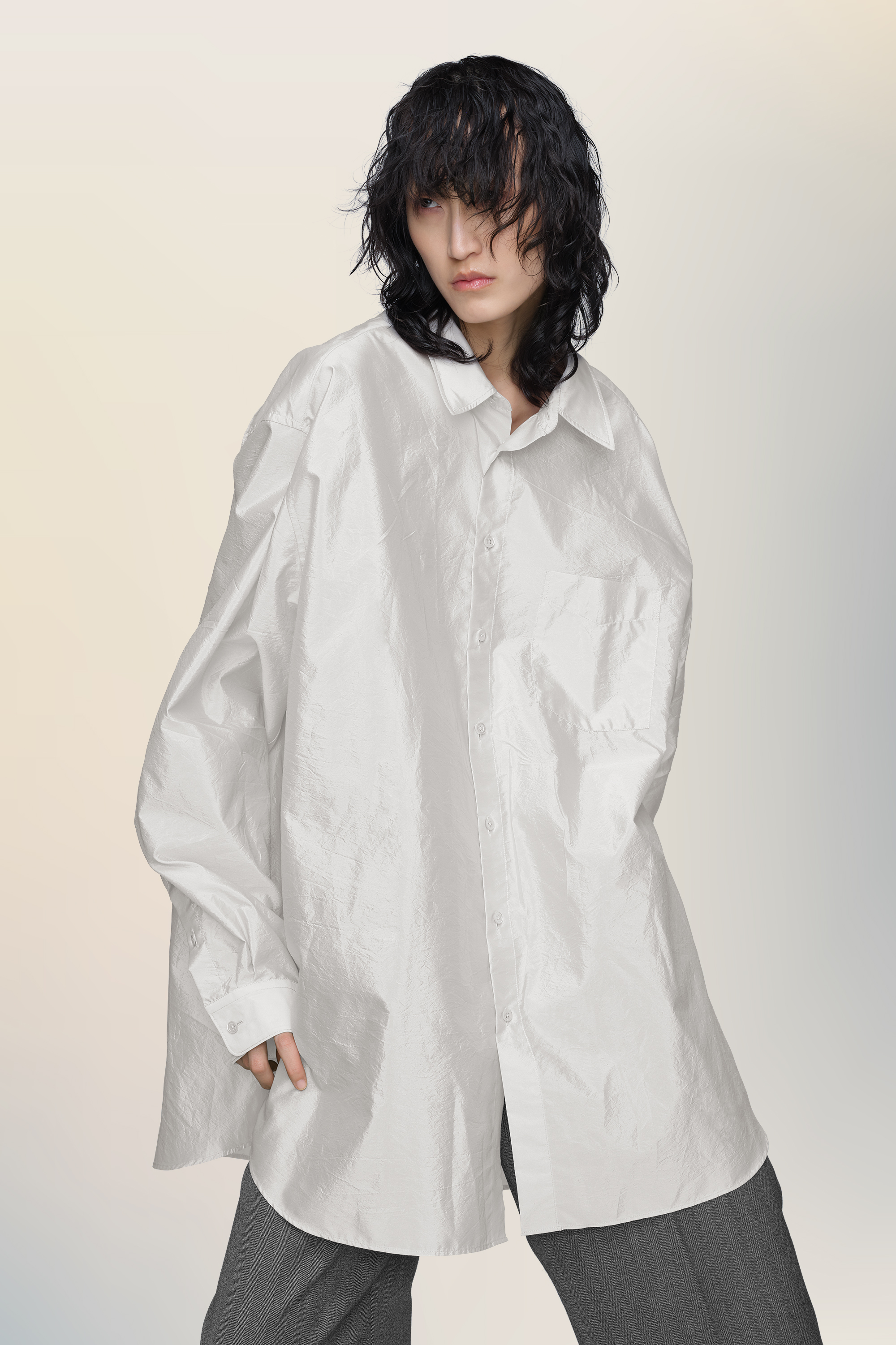 整體設計語彙延伸品牌慣有的實驗精神:傾斜、摺疊的結構暗示「dressing in haste(匆忙穿搭)」的理念,讓空間本身具備一種動態的張力。