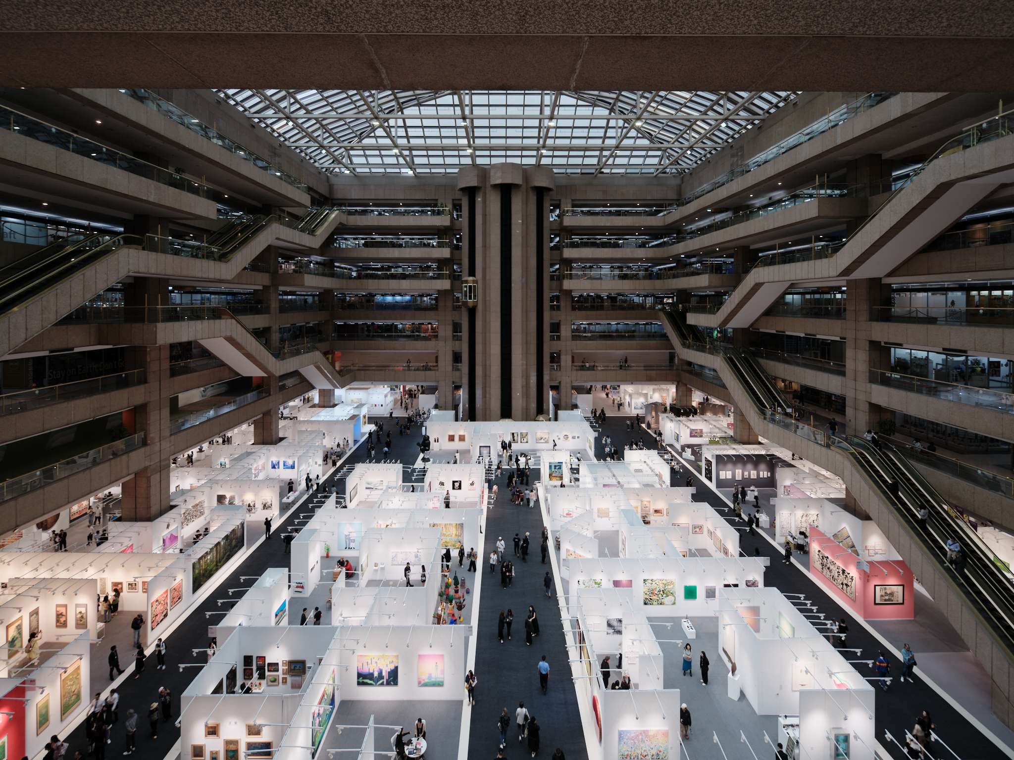 世貿一館內,超過百家來自多國的畫廊共同展出,從歐洲經典到亞洲新銳,從原住民藝術到女性創作,再到錄像與裝置媒材的作品,整個展場像是一座縮小版的城市觀點;觀眾在各個展區穿梭,聽見不同語言的聲音,看見各種文化的軌跡。