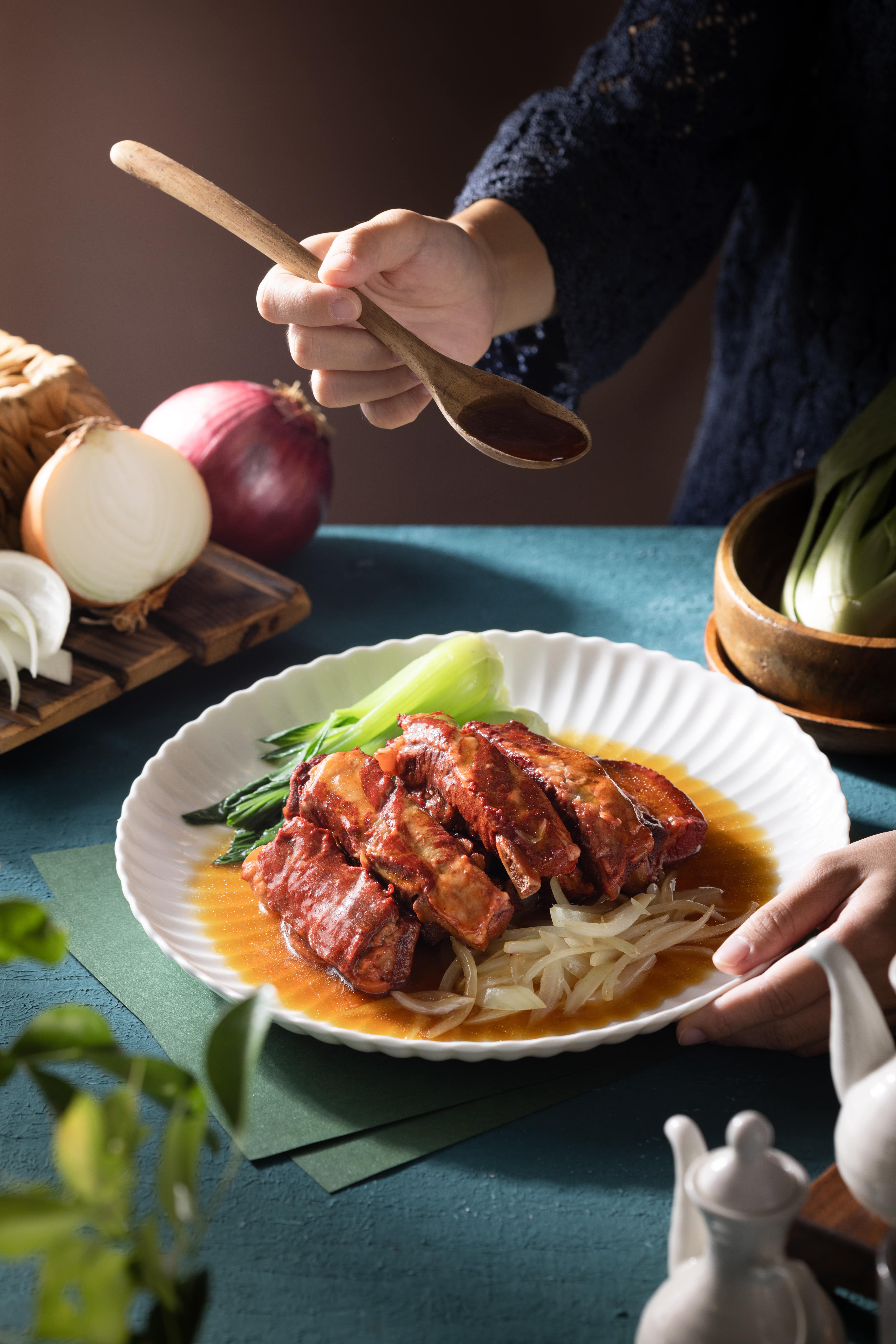 老滷洋蔥醬燒豬肋排。(圖/芯聚苑 提供)