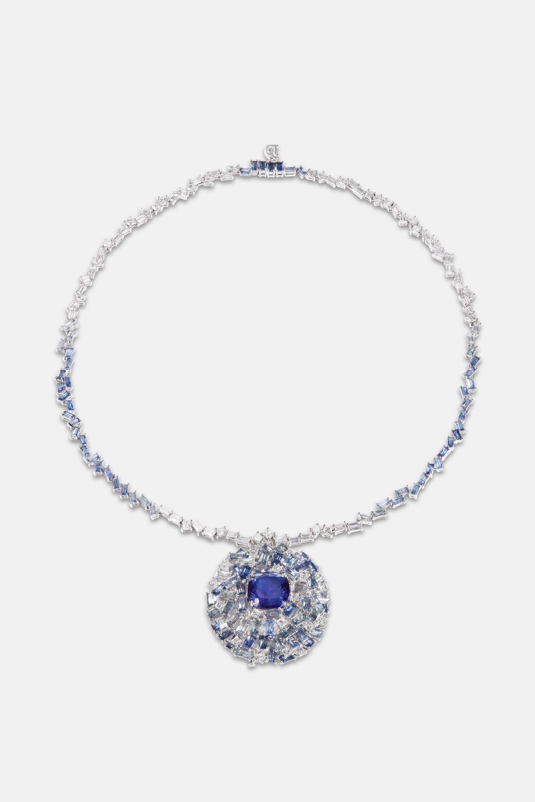 分享本圖Colline dell’Infinito 象徵「無限之丘」,靈感源自詩人賈科莫‧萊奧帕爾迪(Giacomo Leopardi)筆下無垠的丘陵風景,那片被微光渲染的夢境,訴說著義大利藍天的寧靜與花田的柔美,將詩意的藍色幻化為光影流動的珠寶傑作。