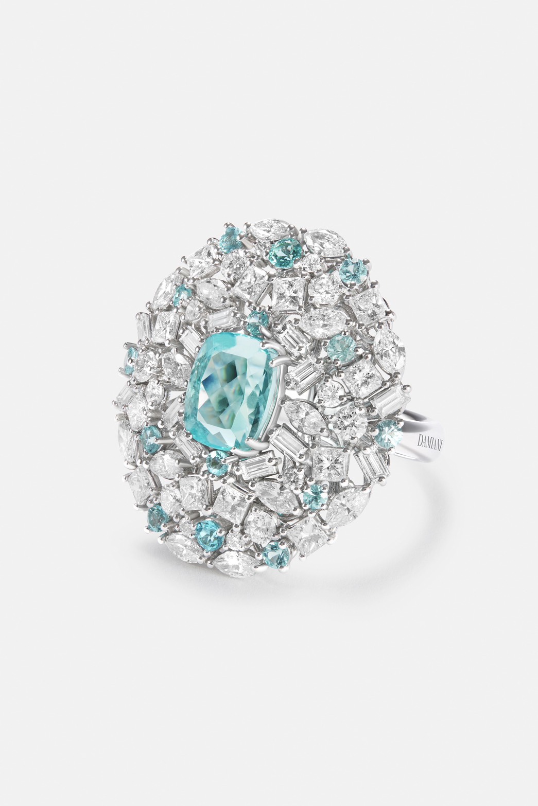 靈感取自地中海的光影與海岸色調,以帕拉伊巴碧璽(Paraiba Tourmaline)的藍綠色為主軸,重現義大利沿岸的閃耀景象。