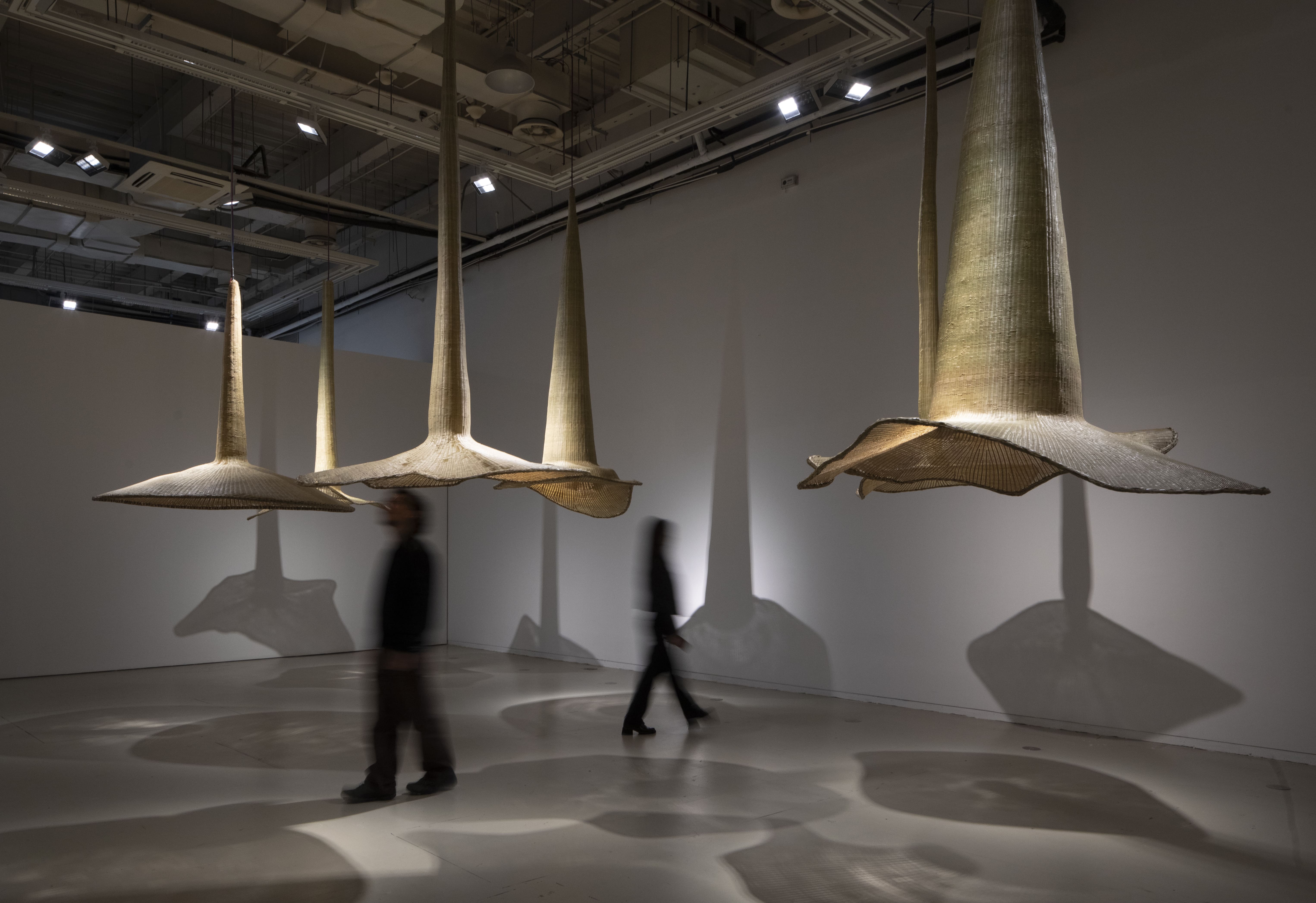值得一提的是,上海展場特別設計成「花園景觀」:觀者可以自由漫步,不必沿既定路線行走。作品如種子般散落在大廳、通道、封閉空間與展廳中,與建築及觀者共同呼吸。展陳團隊沿用 PSA 建築的工業語彙,以素混凝土磚構成人造地形,如同花園假山,引導視角,也可二次利用。行走其間,我相信觀者能感到每一次停頓都是沉思的契機,步隨景移,作品、建築與自身形成一種流動共生的節奏。城市空間項目將藝術延伸至嘉源海美術館、野獸派 tbh 小屋、上海植物園盆景園,伴隨表演、圓桌討論與工作坊,使藝術成為社群的互動場域。
