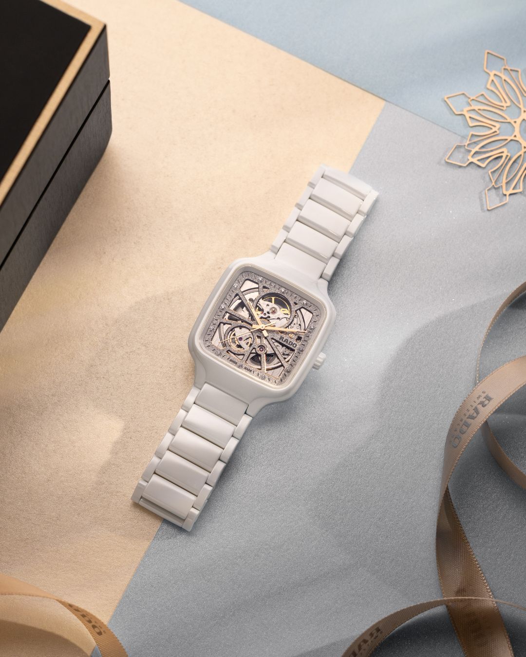 分享本圖拋光的高科技陶瓷錶殼與錶鏈散發著純白光澤,銠色錶盤上的細緻鑽石粉末紋理,就像是清時陽光照亮雪地的那一刻一樣。十二顆鑽石時標在錶面上閃爍,而透過鏤空設計,你能看見底下的 Rado R734 自動機芯,如同冬夜裡跳動的心臟,高速振動的擺輪展現出生命的節奏。玫瑰金指針輕盈滑過錶面,彷彿為冰冷的雪景添上一絲節慶的溫暖。以獨特設計與純粹質感,把冬季的魔法留在腕間,提醒人們放慢腳步,感受當下的光彩。
