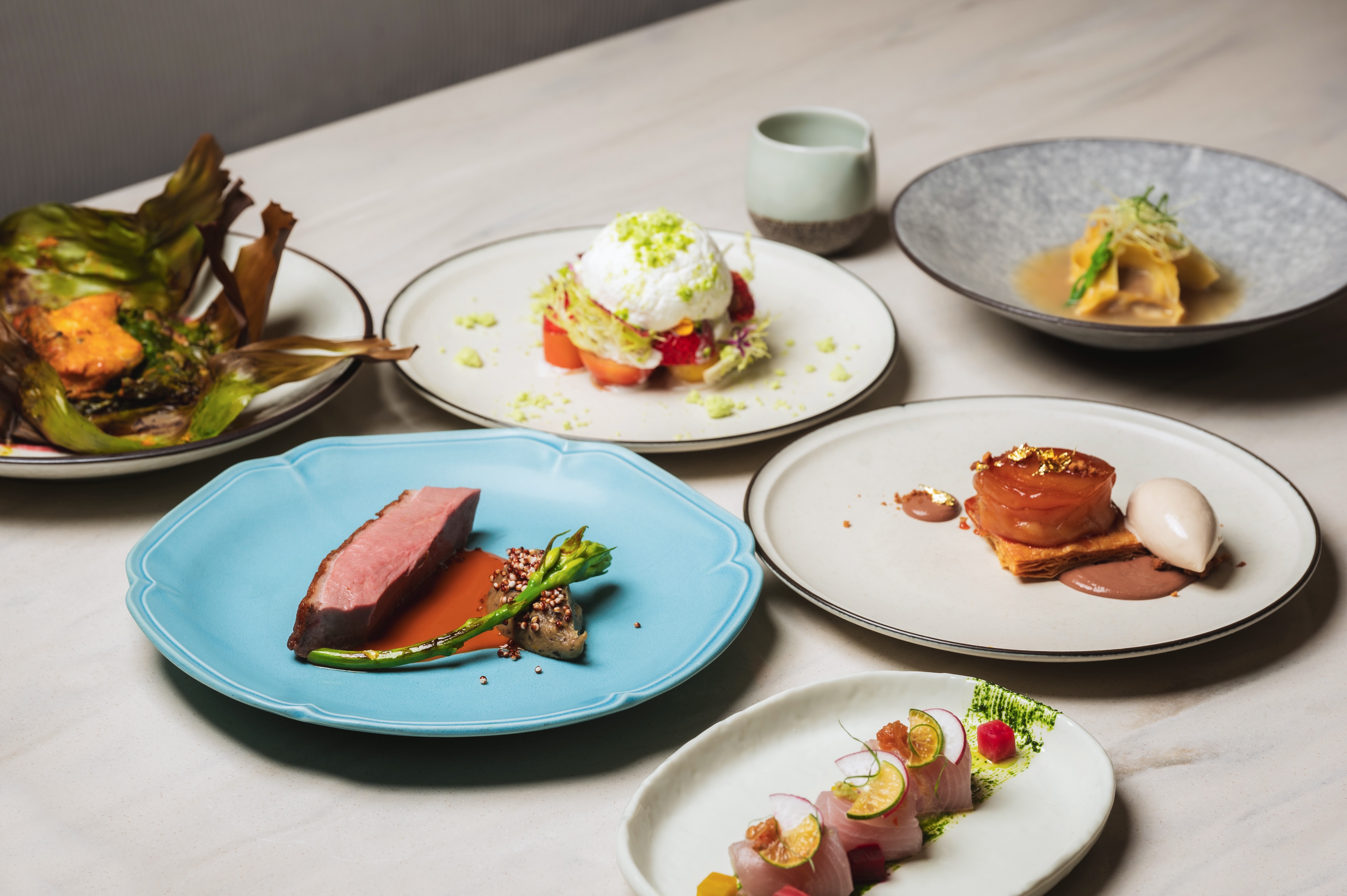 「乾式熟成鴨胸、燈籠椒、茄子、藜麥」。(圖/Golden餐廳 提供)