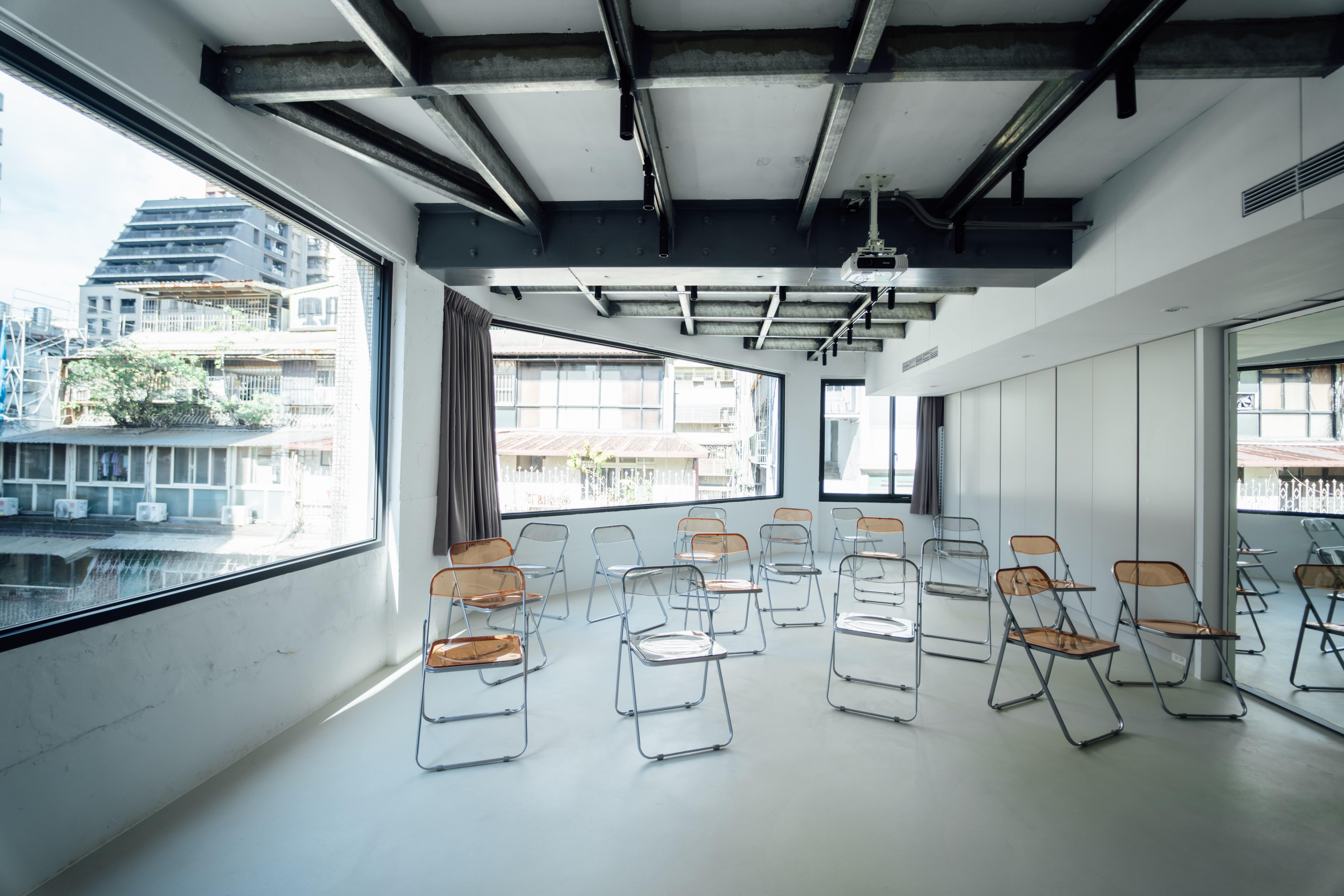 四樓就像是一個探索自己的空間,設有交誼廳、開放式舞台、多功能教室及影音播映室。身為大人的我們,有時候也會想要跳脫舒適圈,嘗試一些不一樣的事情,例如攝影、錄 podcast。然而,我們很常遇到的問題就是資源受限,想試試的心態永遠不足以支撐自己去購買所需要的器材,於是想法就這樣不了了之,沈入海中。
