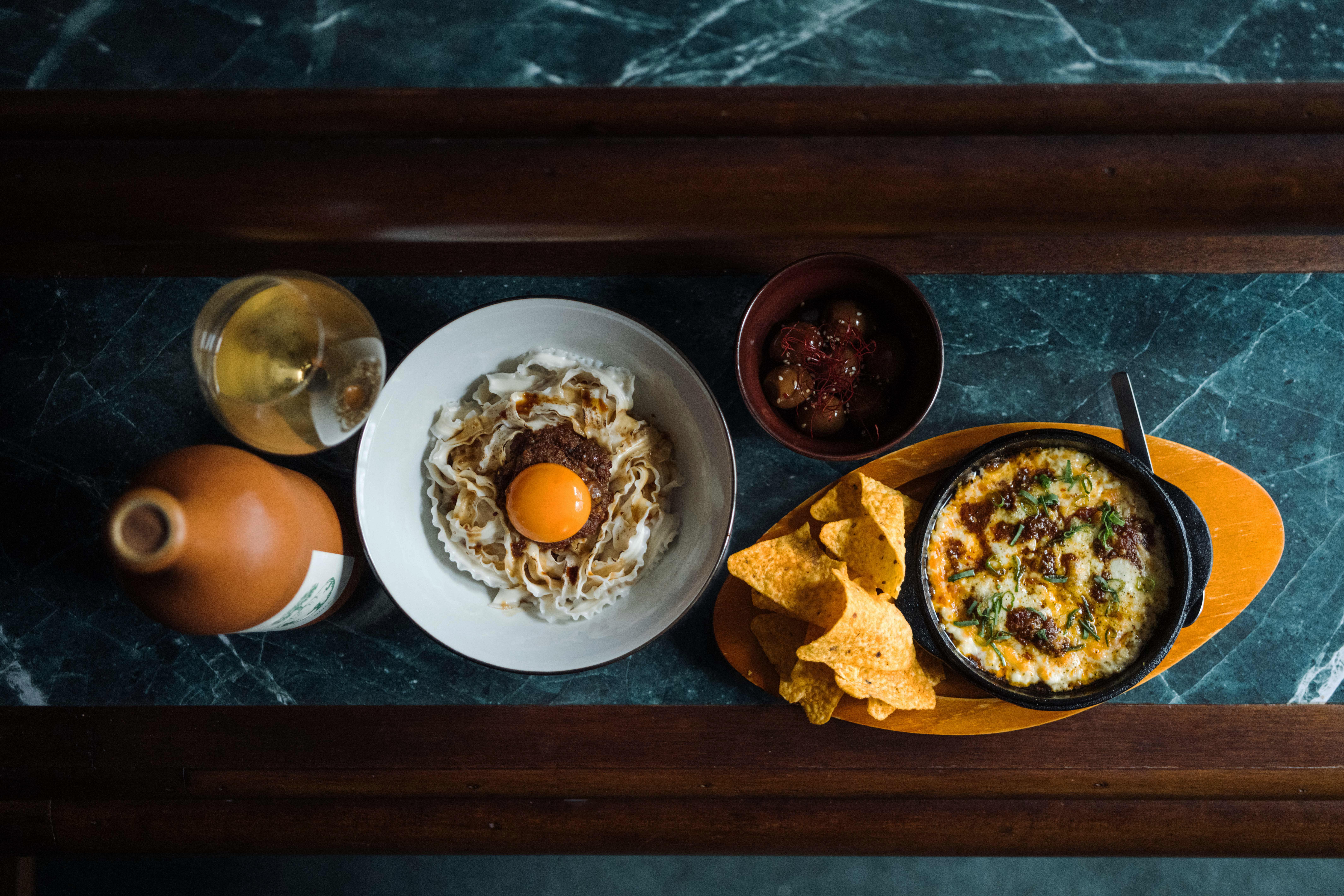 酒吧的選酒聚焦於崇尚風土韻味和天然本性的自然酒,酒單以「時間的刻度」、「風土的描繪」與「意識的風味」三章節呈現,期盼藉由「有意識的選擇」,每位來客盡情拋開產區、年份與艱澀的術語,用直覺和好奇心感受風味,進行一場與自己、與他人深度對話的微醺時光。餐食則是由食物設計師 Longlong 操刀,端上以「傳承」為主軸的台式 Fusion 小食,從麻藥鵪鶉蛋到 longlàjohn 肉醬拌麵,每一道都在經典中灌注創新。