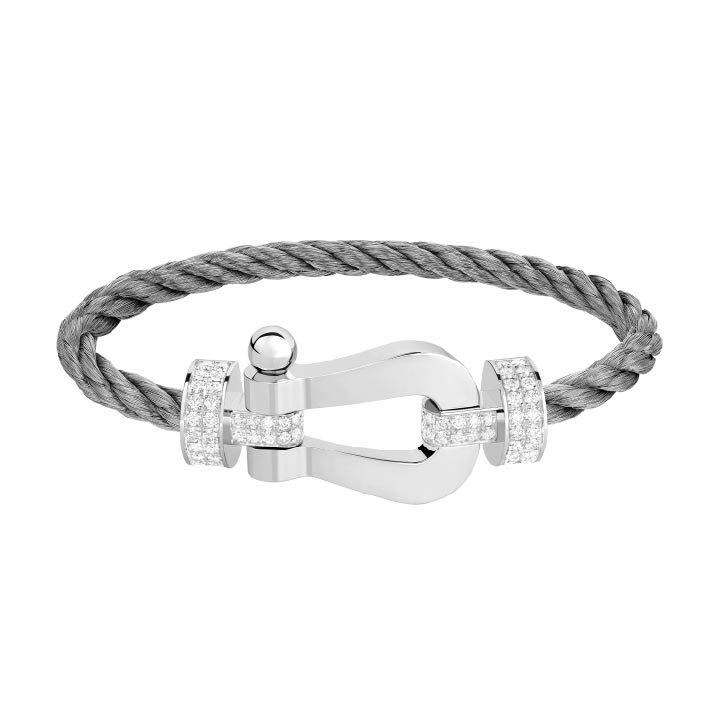 FRED 「 Force 10 」,系列超大號手環, 18 K 白金鑲嵌鑽石。(圖/FRED 提供)