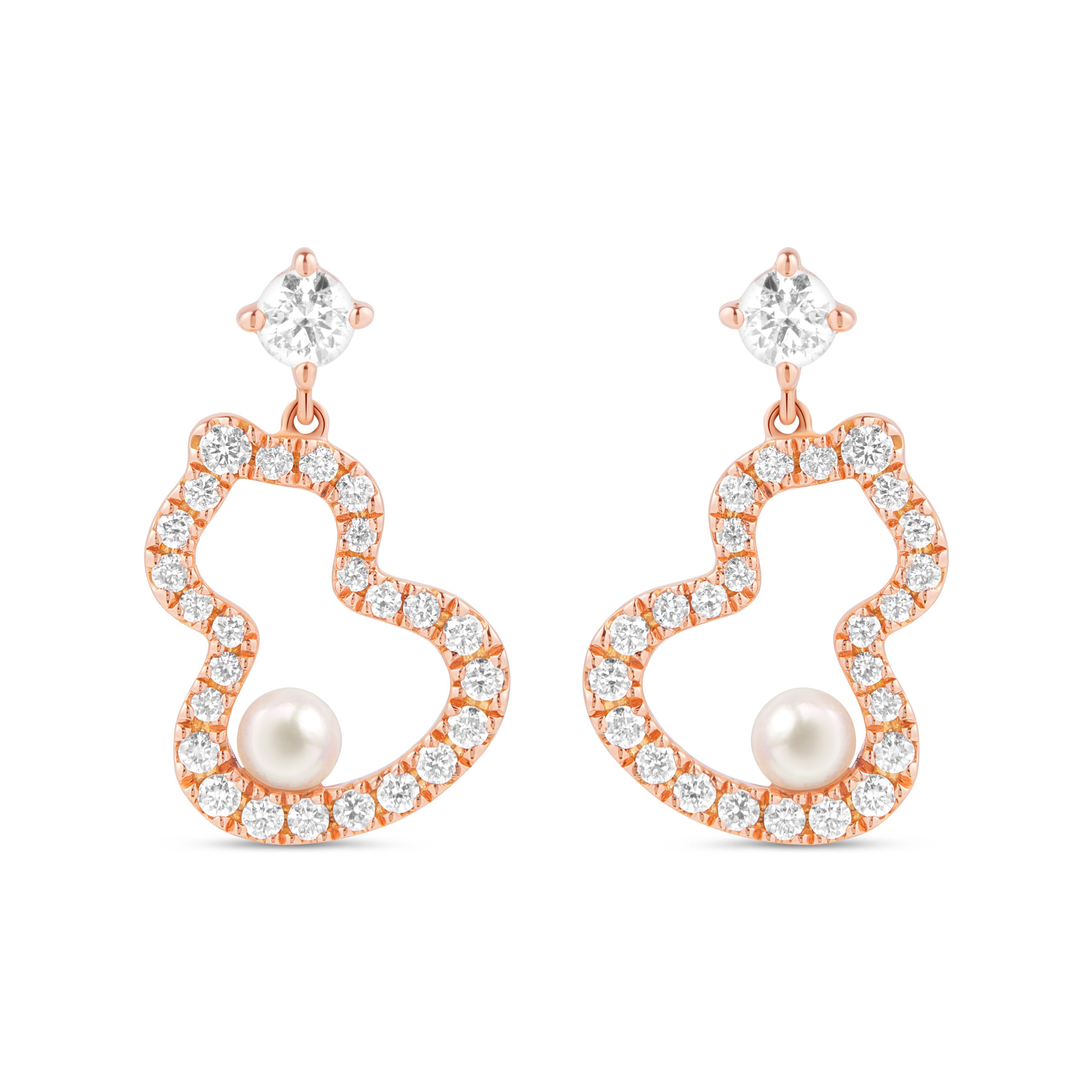 Wulu Petite 18K 玫瑰金 鑲嵌鑽石及 Akoya 珍珠耳環。(圖/Qeelin 提供)