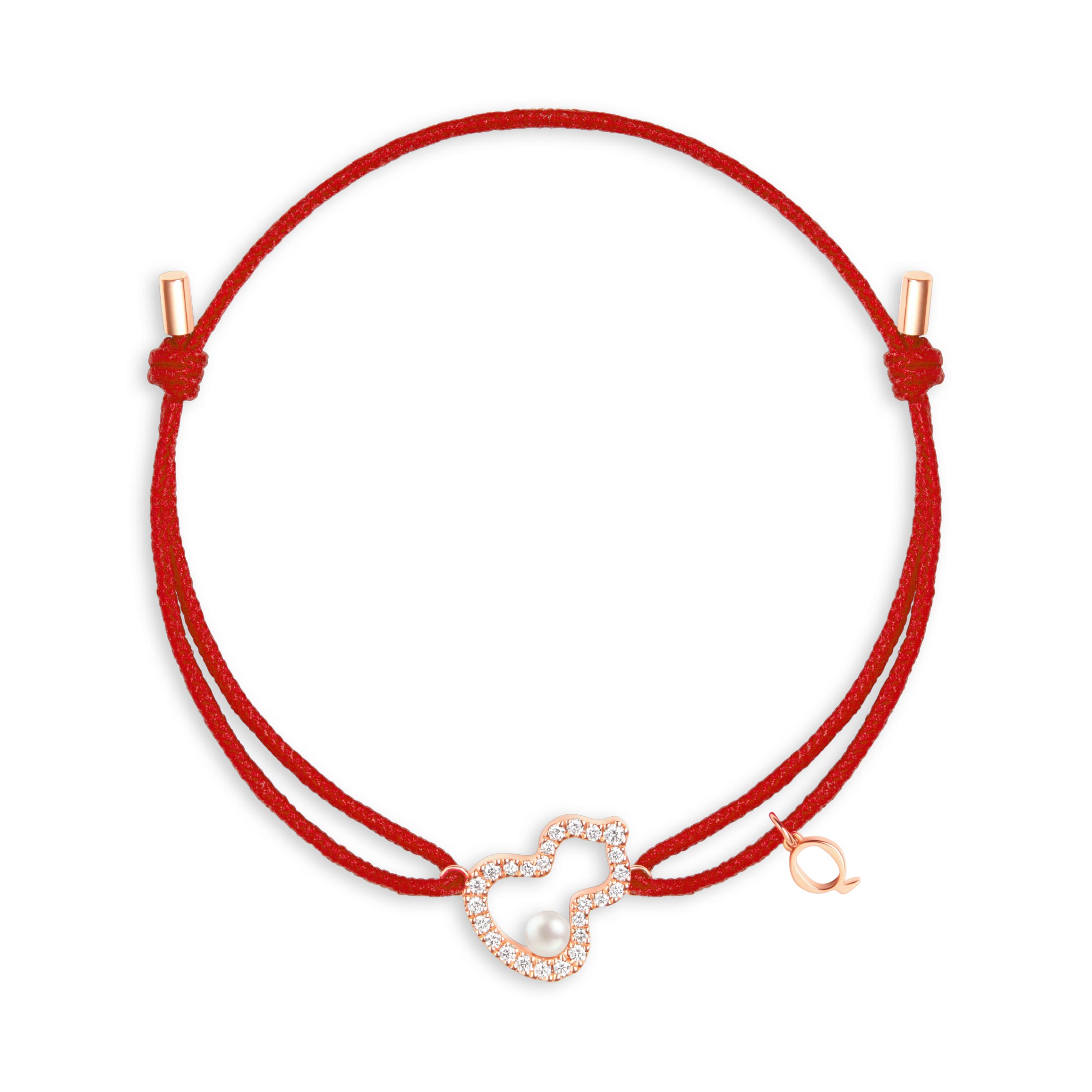 Wulu Petite 18K 玫瑰金 鑲嵌鑽石及 Akoya 珍珠紅繩手鍊。(圖/Qeelin 提供)