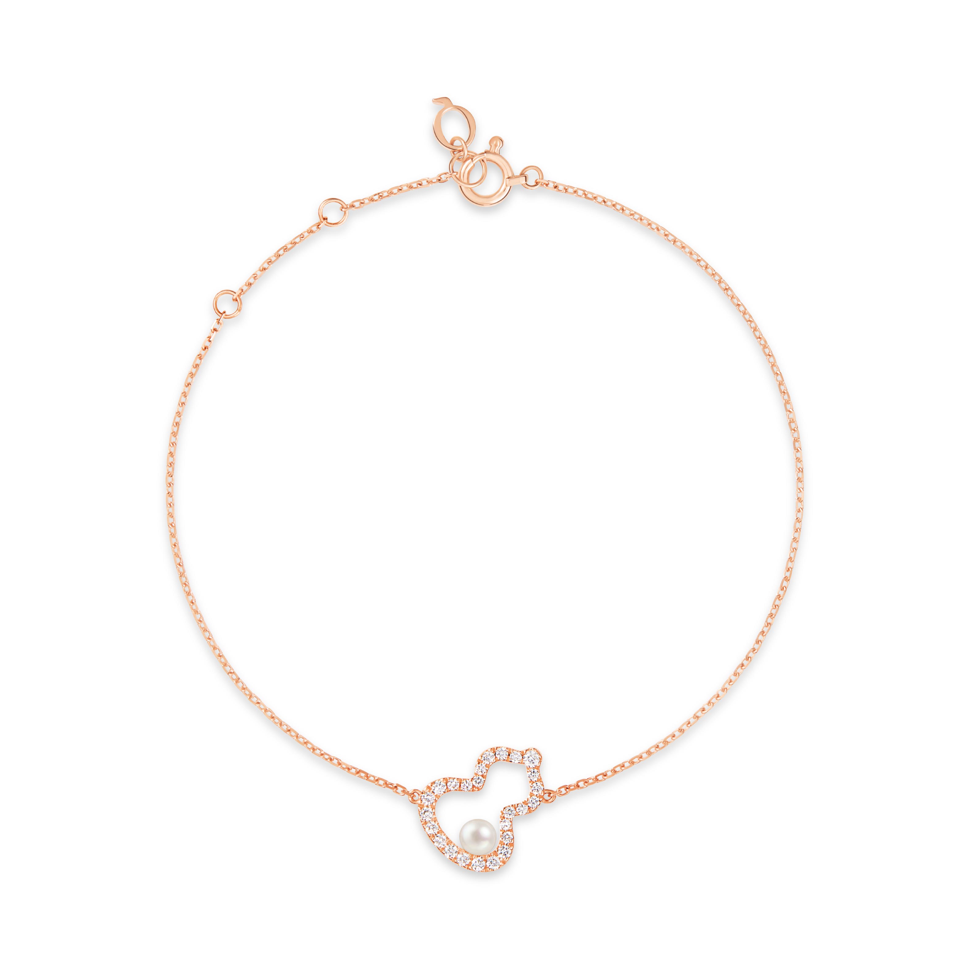 Wulu Petite 18K 玫瑰金 鑲嵌 Akoya 珍珠及鑽石手鍊。(圖/Qeelin 提供)