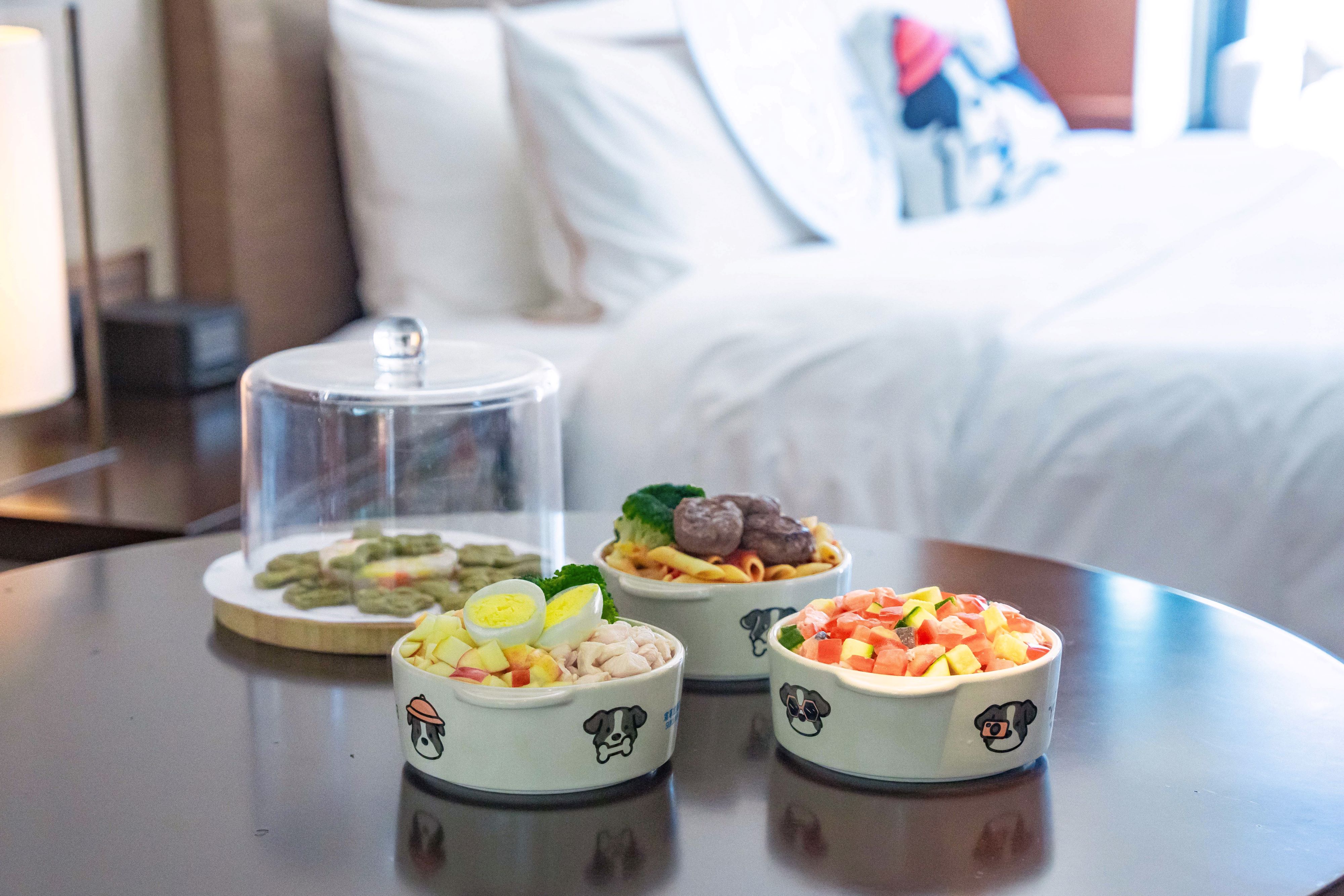 分享本圖除了齊全的備品外,甚至還針對毛孩的營養與適口性打造專屬料理,包含「番茄肉丸義大利麵」,以及用鮭魚與時蔬燉煮而成的「鮭魚鮮蔬燉飯」,和「雞肉蘋果拌飯」與「毛孩元氣能量凍」,為毛小孩獻上最細心與健康的佳餚,而主人也可以和毛小孩一同用餐,共創溫馨時刻!只要在活動期間入住,便可以獲得多項毛小孩系列專用保健品,實現與毛孩一同開心旅遊,一同安全回家的美好時光。
