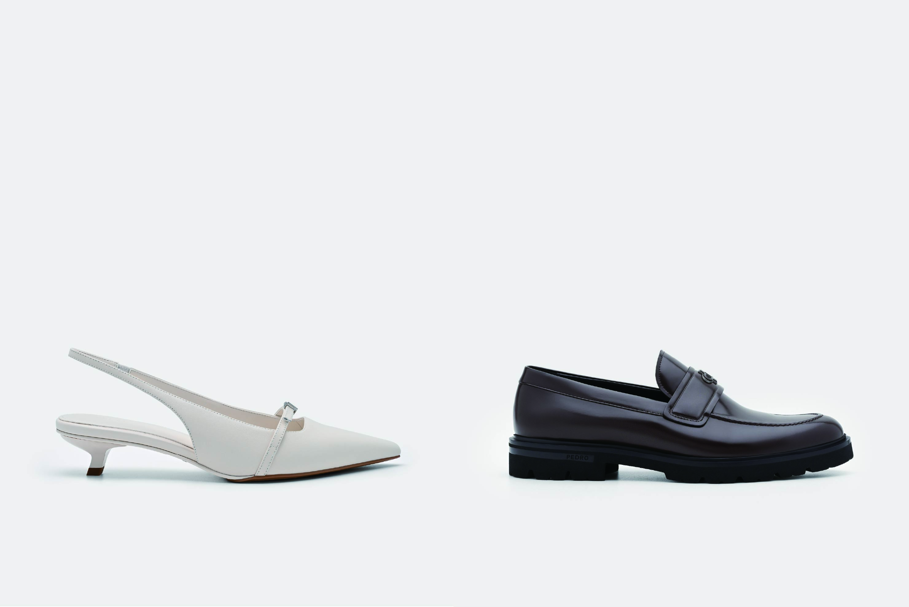 Maggie 皮革後空高跟鞋(左), Wyatt 皮革樂福鞋(右)。(圖/PEDRO 提供)