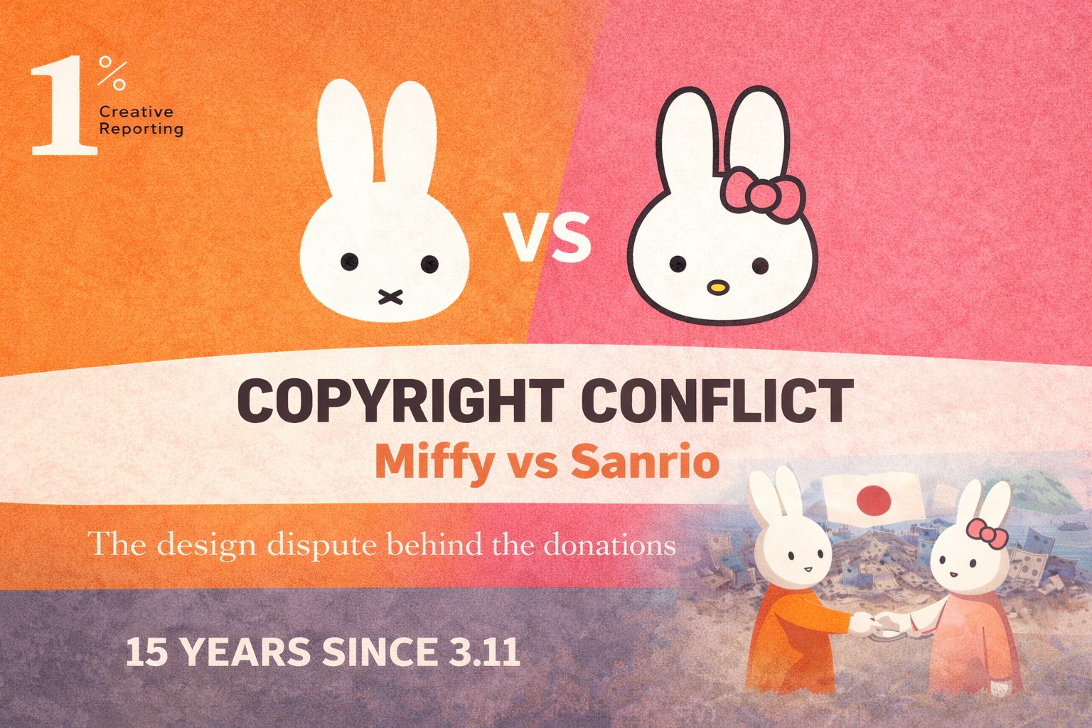 上星期三 3 月 11 日,距離日本三一一大地震已滿 15 週年,當時造成極為嚴重的影響,儘管已事隔多年,儘管災區也投入鉅資重建,但仍有 2.6 萬人處於避難狀態,更有 2500 人仍失蹤。而當年事件意外成為兩個陷入著作權之爭的品牌的轉捩點,那便是日本出產的凱蒂貓與荷蘭插畫家設計的米飛兔。於 2000 年代後期,代表米飛兔著作權的公司 Mercis 便開始積極維護角色的設計,更在 2011 年正式向凱蒂貓的公司 Sanrio 提起侵權訴訟。最終雙方在當年進行和解,更推出慈善合作商品,部分收益用於震災相關援助,可謂是一場延伸於法庭外的文化與人文合作。