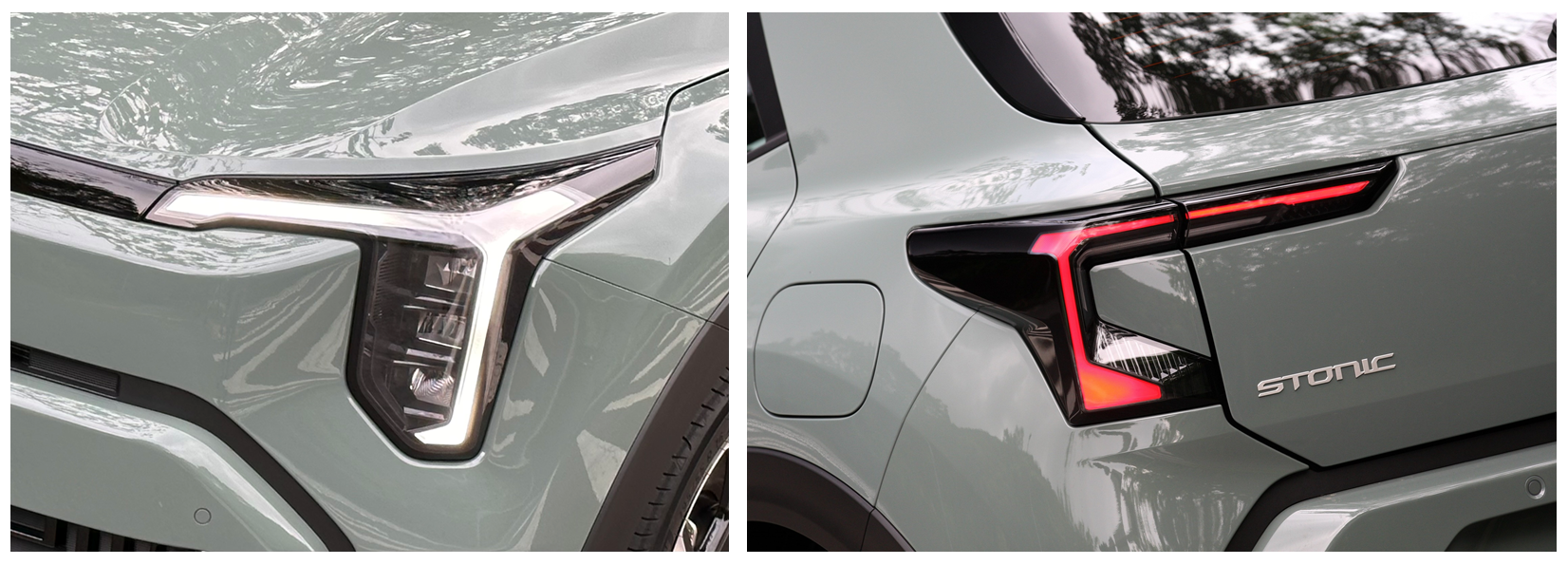 外觀方面,The new Stonic 最大的變革在於導入品牌新世代設計語彙,使整體視覺更貼近 Kia 近年電動車家族風格。車頭採用 Digital Tiger Face 設計語言,搭配極具辨識度的 Star Map LED 星圖式頭燈與尾燈,使整體造型更具未來感與科技氛圍。