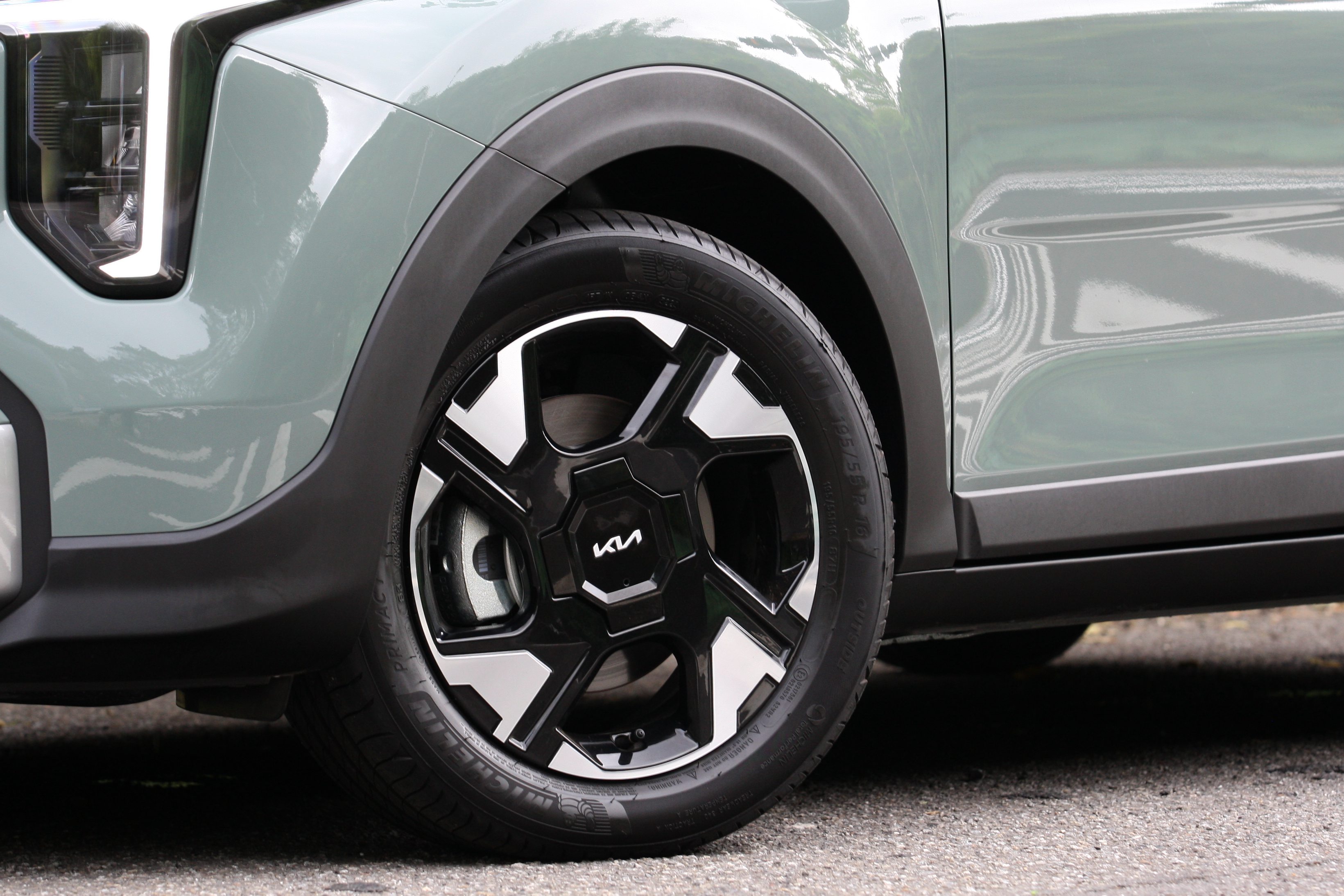 分享本圖新款 16 吋雙色鋁合金造型輪圈採用目前流行的隱藏式螺帽設計,原廠 195/55R16 的配胎更用上了 Michelin Primacy 4 等級。 (圖/顧宗濤 攝)