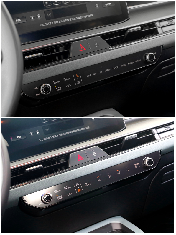 分享本圖操作介面方面,採用電容觸控式的一鍵切換數位控制面板的設計相當實用,能在多媒體與空調之間快速切換,同時也刻意保留實體按鍵,兼顧科技與操作便利性。繁體中文介面的多媒體系統可支援語音聲控,Apple Carplay / Android Auto 也可透過有線連結上傳通訊錄、Google Map 導航、音樂等個人喜好設定。