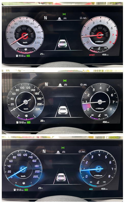 The new Stonic 具備 Sport/Normal/Eco 三種行車模式,可由方向盤左下角隨時依路況需求切換。(圖/顧宗濤 攝)