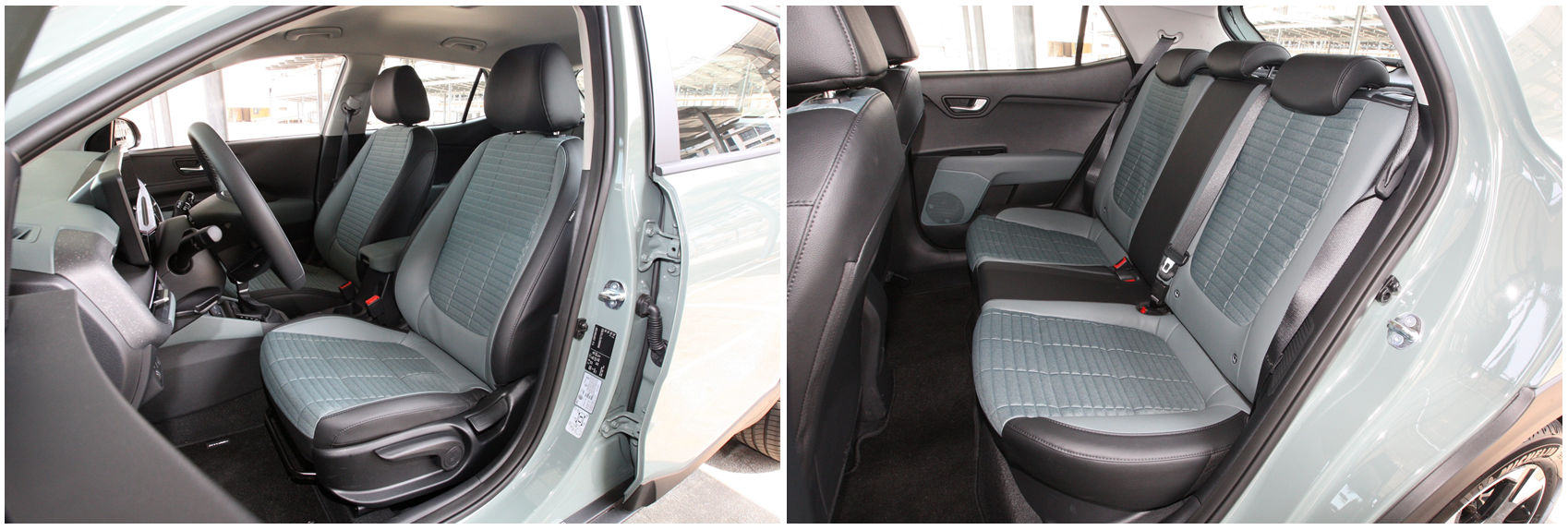 The new Stonic 採用全新的 Mélange 複合材質座椅,圖中試駕車款因選配莫蘭迪綠套件,包括方向盤、雙色座椅、內裝飾板等皆為雙色搭配。(圖/顧宗濤 攝)