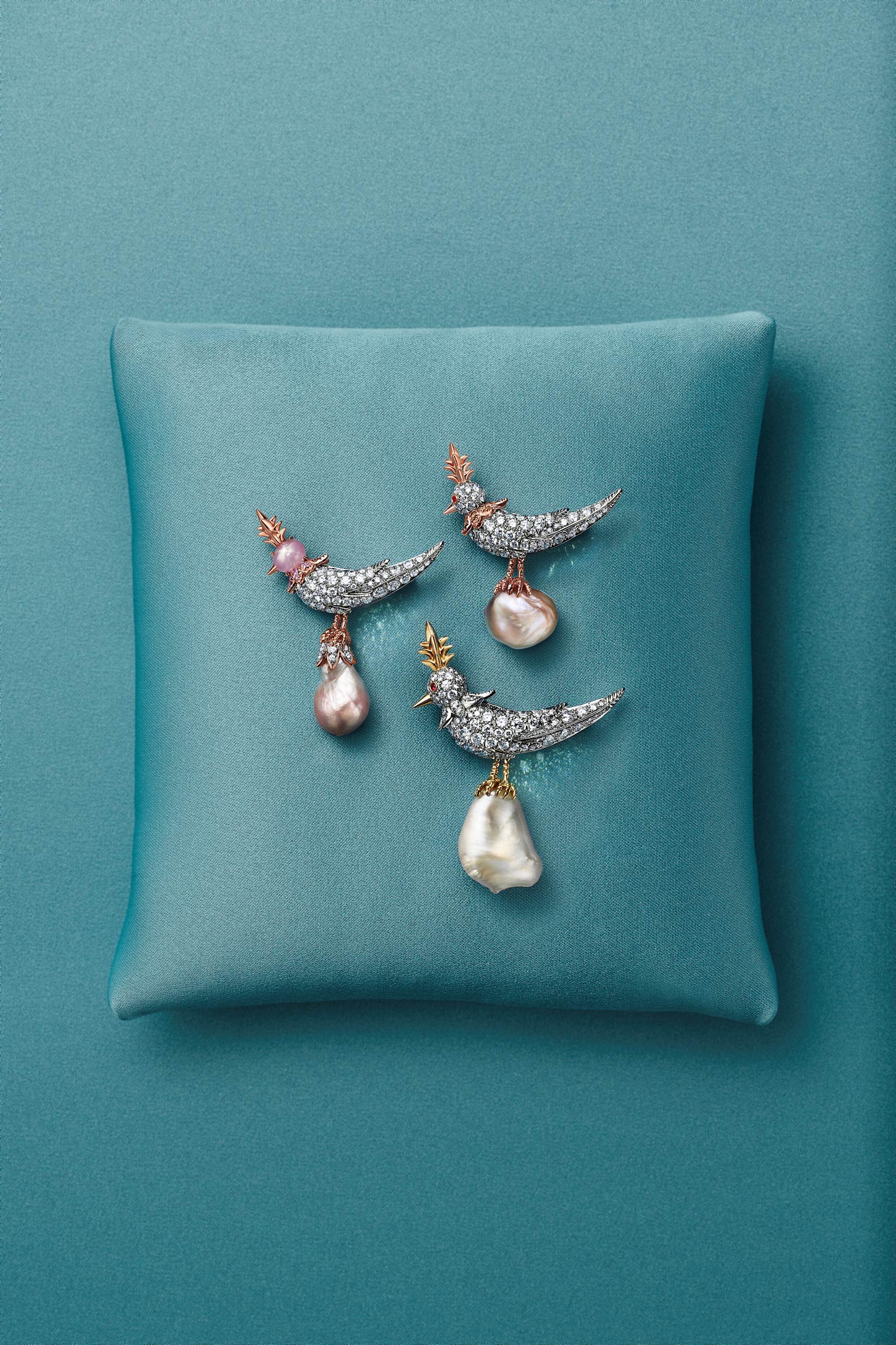 這個新系列在 Tiffany 珠寶及高級珠寶首席藝術長 Nathalie Verdeille 的遠見下誕生,用天然海水珍珠獨特的美和稀有價值,把品牌的經典設計變得更加出色,讓珠寶既優雅又有藝術氣息。珠寶選用了侯賽因·阿法丹( Hussein Al Fardan )先生私人珍藏的頂級天然海水珍珠,每一顆珍珠都以出色的色澤、獨特的形態及溫潤的光澤而聞名,成為系列設計的靈感核心。今年的系列還加入了新的創意設計,將「星光藍寶石」運用在小鳥的鳥首,透過星光藍寶石與珍珠之間的互動,營造出詩意的動態張力。