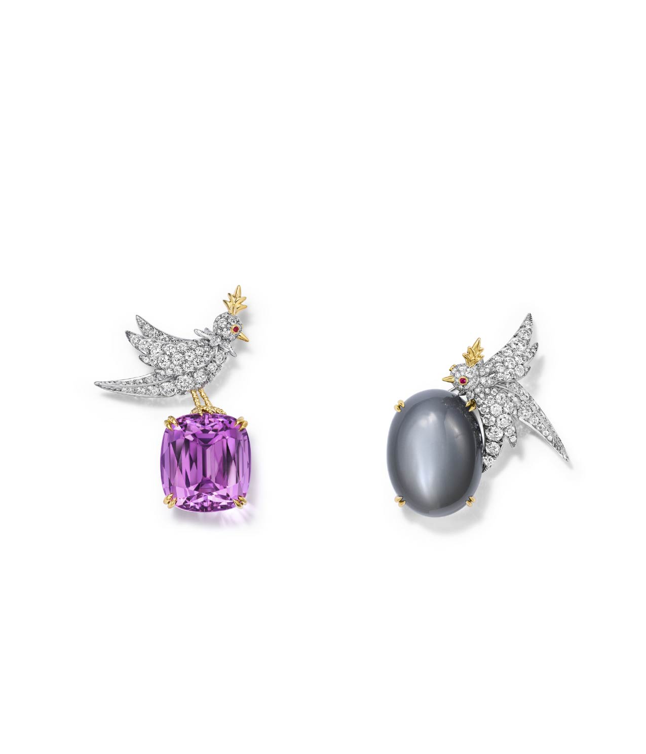 石上鳥高級珠寶膠囊系列, Love Birds by Tiffany 紅碧璽胸針組。(圖/Tiffany & Co. 提供)