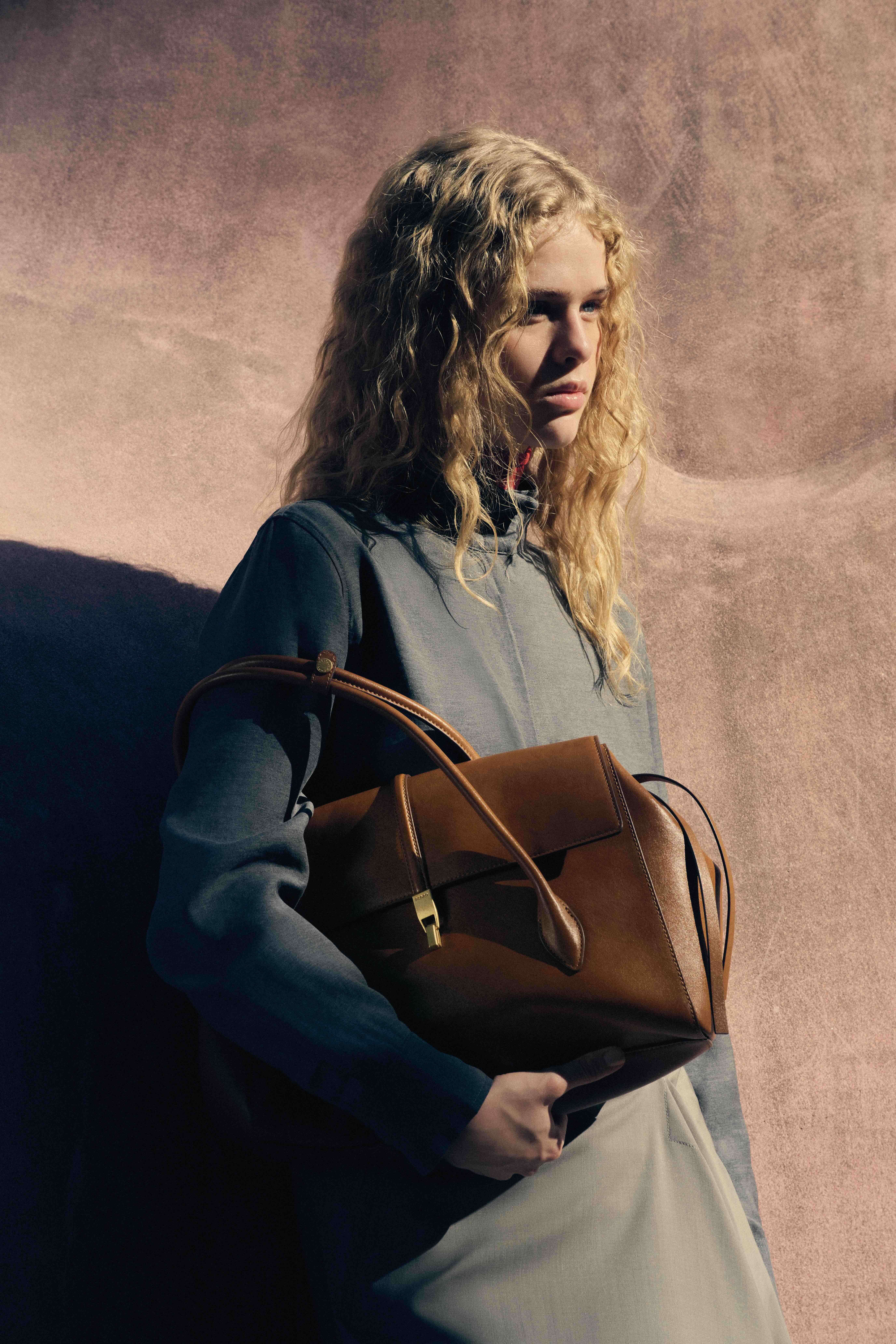 分享本圖除了包包外,鞋款也同樣備受關注,首先是以柔軟的小牛皮絨面革貼合腳型的皺皮便鞋,展現出獨特的設計感,而另一款 Agnes 芭蕾舞平底鞋,則因為其圓潤柔軟的鞋頭,展現出日常與芭蕾融合的現象,更透露出不一樣的日常風格。