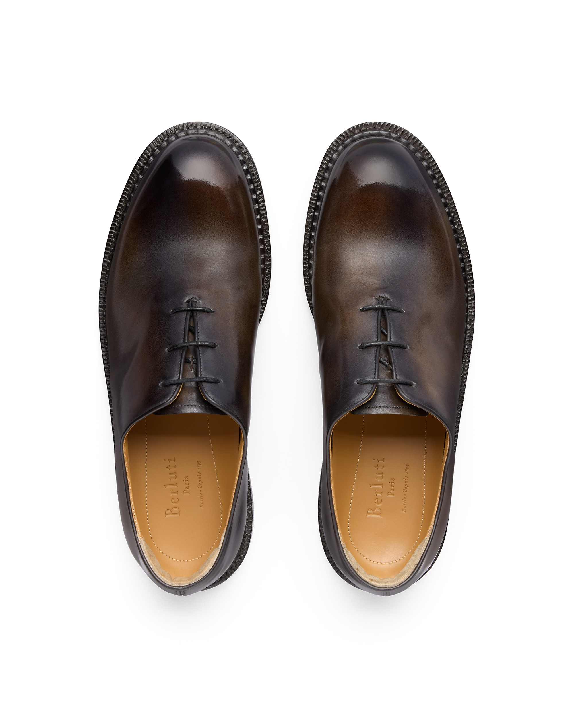 分享本圖這次的 2026 Berluti 春夏系列,以 1895 - 傳奇新繹的鞋款受到大眾喜愛,更是本次春夏的主打款式,本款重現品牌首款鞋履,並融入大膽的設計,採用單片皮革製成,並配上三孔繫帶和花紋滾邊的皮革沿條,將傳統與現代美學完美融合。另外一款 Forestière 'Ultra Leggera' 輕盈夾克也備受關注,該款使用柔軟且透氣的亞麻面料打造而成,讓穿搭者感到十分舒適,加上古法染色牛角鈕扣,不僅舒適度高外,還同時具備美觀性,不張狂但優雅低調,非常適合上班族。