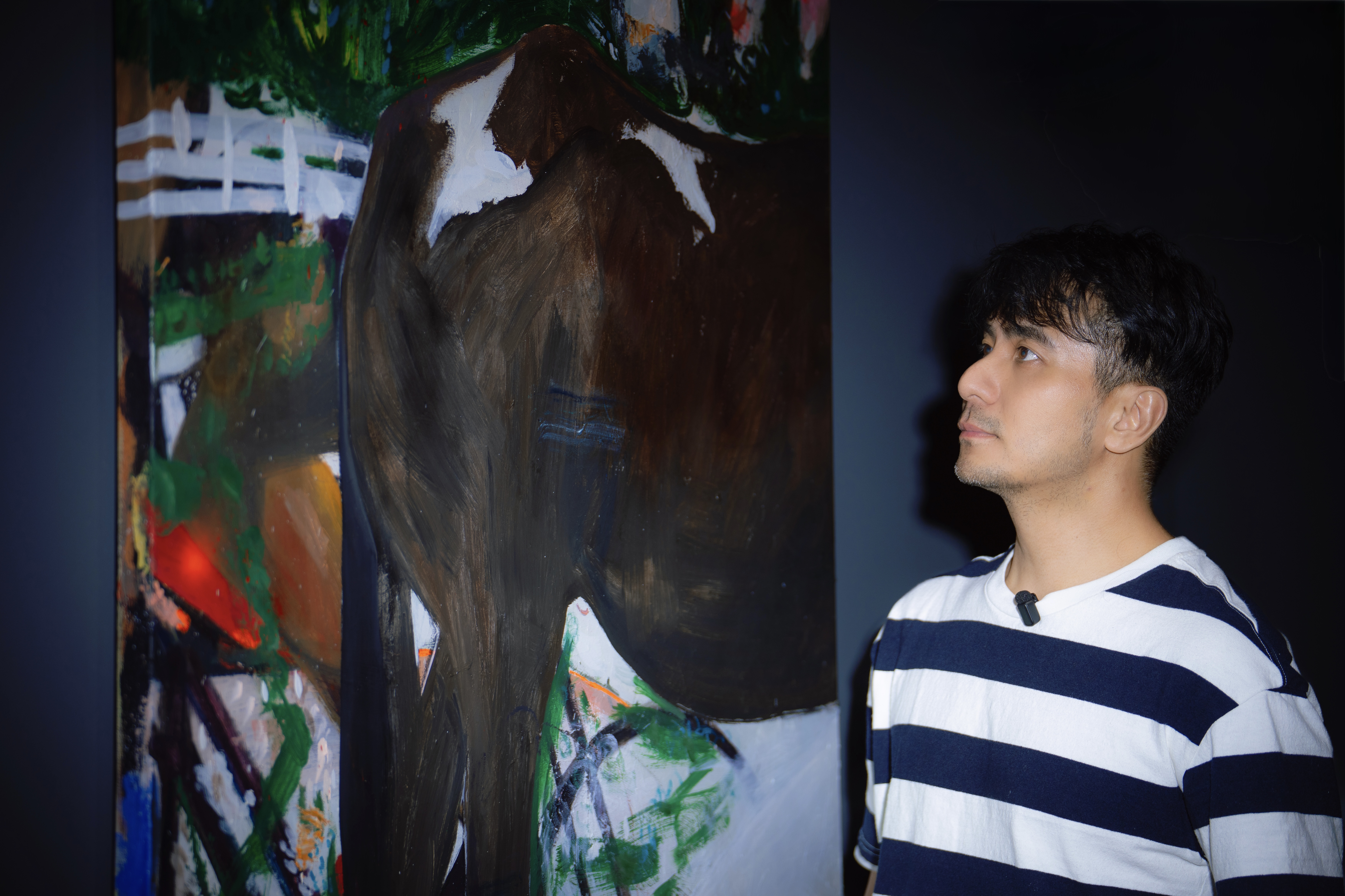 這也是郭彥甫形容創作與畫布之間的關係:「畫布看起來很堅固,但它也像一面鏡子。」每一次落筆,都在回應當下的狀態——當節奏被打亂,畫面也會跟著改變;當狀態重新建立,畫面則進入另一個層次。這種往返,使創作維持在一種流動之中:「就像水一樣。」