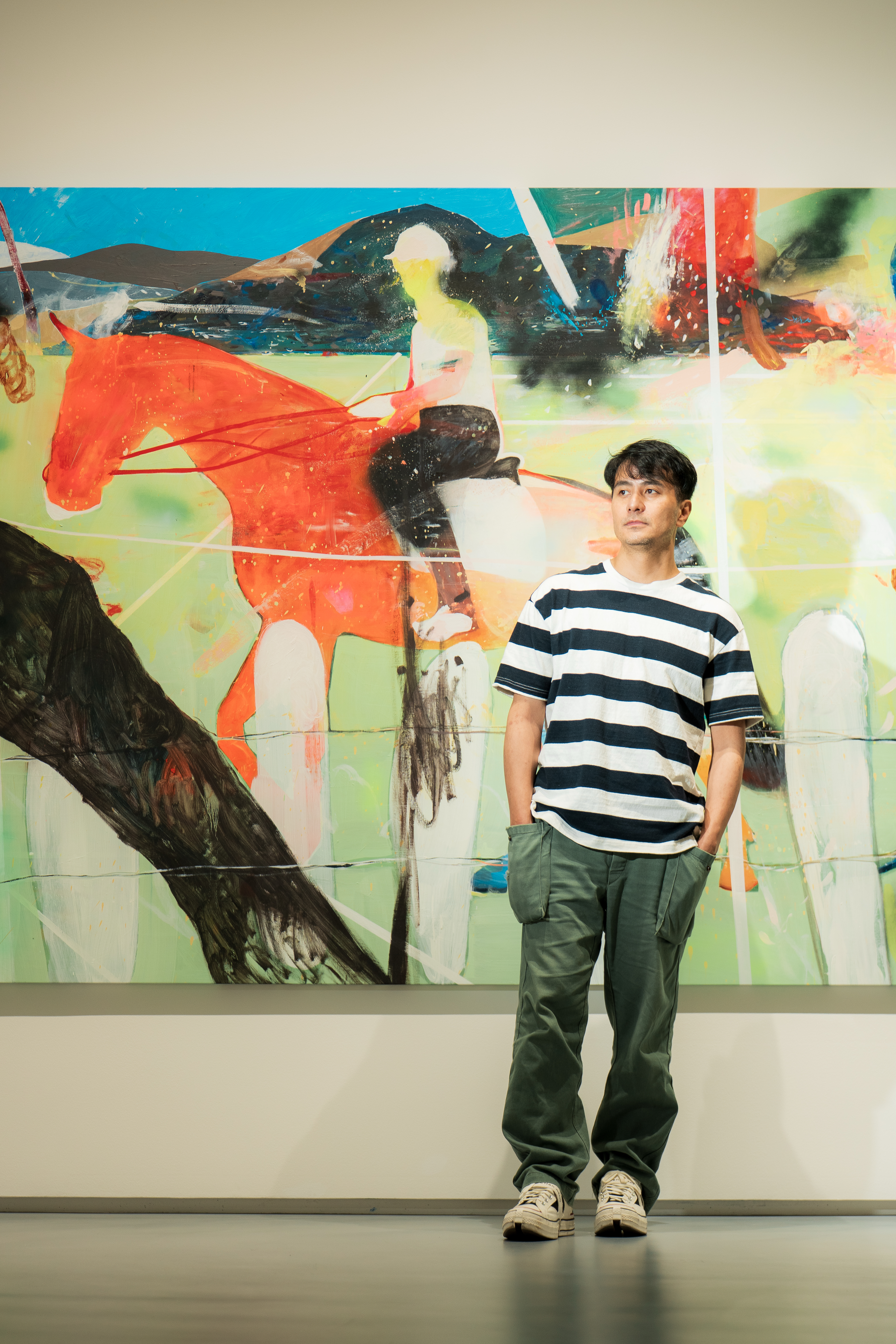 在這樣的變動之中,「馬」成為一條紀錄郭彥甫創作軌跡最穩定的線索。童年時期在馬場的經驗,構成他最早的感官記憶:「我在最開始,就很喜歡那個地方。」馬場的場景,帶來一種非常直接的感受,也成為創作中可以反覆回放的位置。