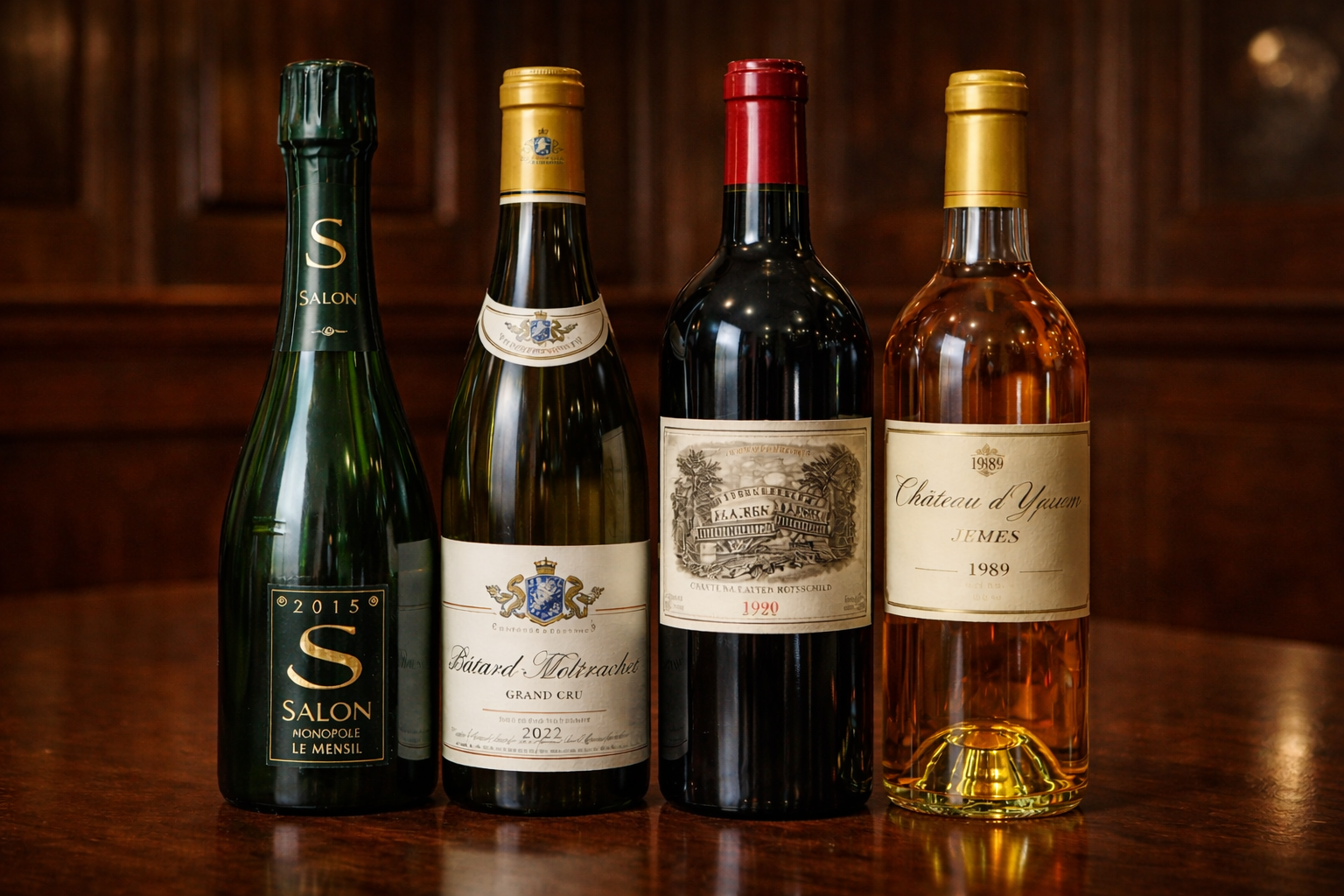但更關鍵的,是他在每一個位置上,都選擇了該類型中最具「代表性」的答案。開場的 Salon 2015,幾乎是香檳世界對「純粹」的極致詮釋。只來自單一村莊 Le Mesnil-sur-Oger、只在優秀年份釀造,風格線條俐落、礦石感鮮明,它不是用來討好味蕾,而是用來定義節奏——讓整場晚宴從一開始就進入一種乾淨而精準的狀態;接著的 Domaine Leflaive Bâtard-Montrachet 2022,則讓白酒不再只是過渡,作為勃根地 Grand Cru,它擁有足夠的厚度與結構,能夠承接主菜等級的料理。這樣的安排,其實在傳統法式餐序中具有關鍵意義——白酒不再只是開場,而是整體架構中的核心之一。