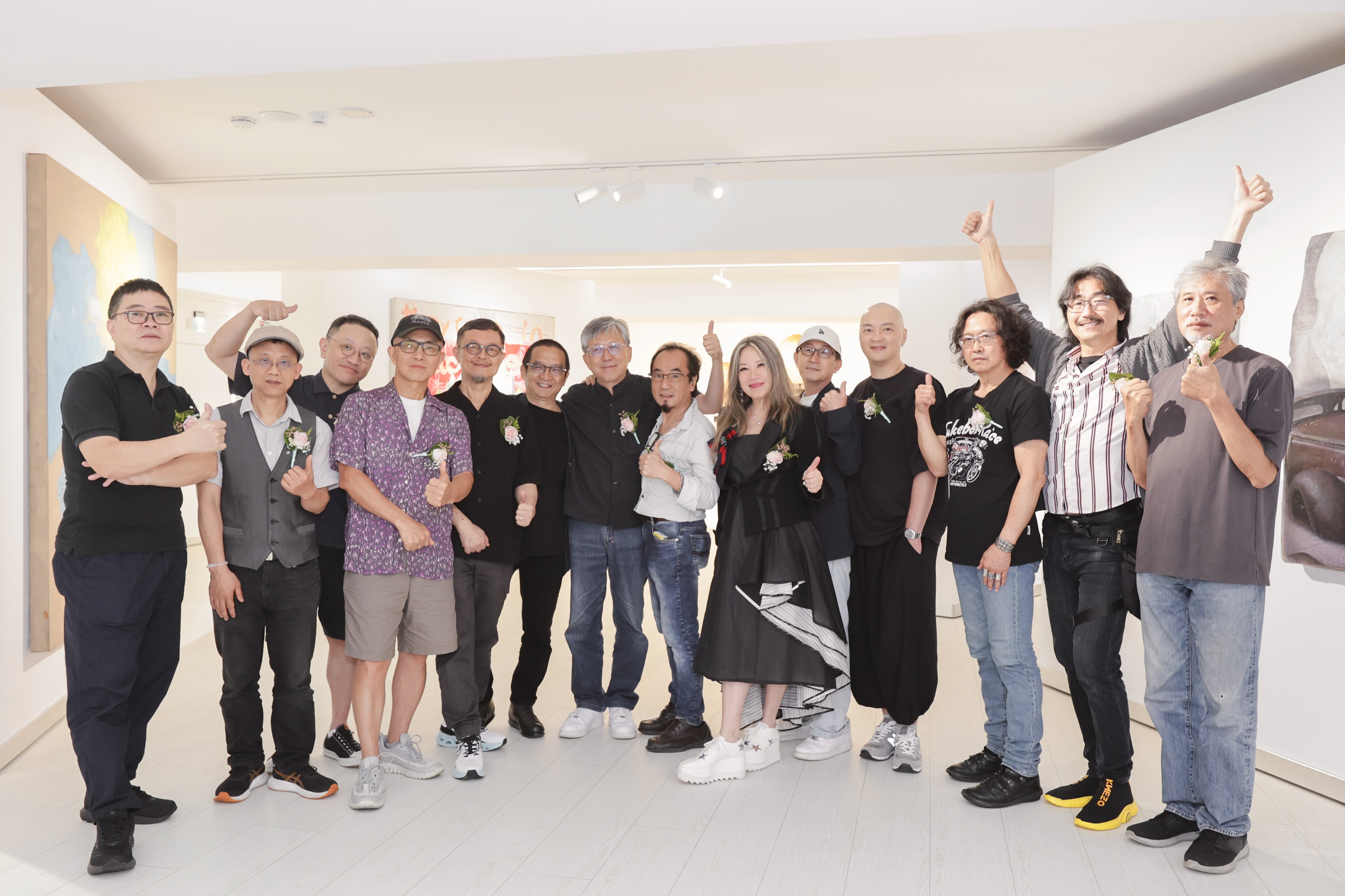 藝術家與 Bluerider ART 的合作, Elsa 希望不以短期結果為目的,而是建立一種長時間的對話,把國外藝術家帶進台灣藝術觀點是如此,帶台灣藝術觀點邁向世界也是如此。圖為 2025 年 Bluerider ART 邀請悍圖社成員聯展,藝術家與 Elsa 合照。(圖/Bluerider ART提供)